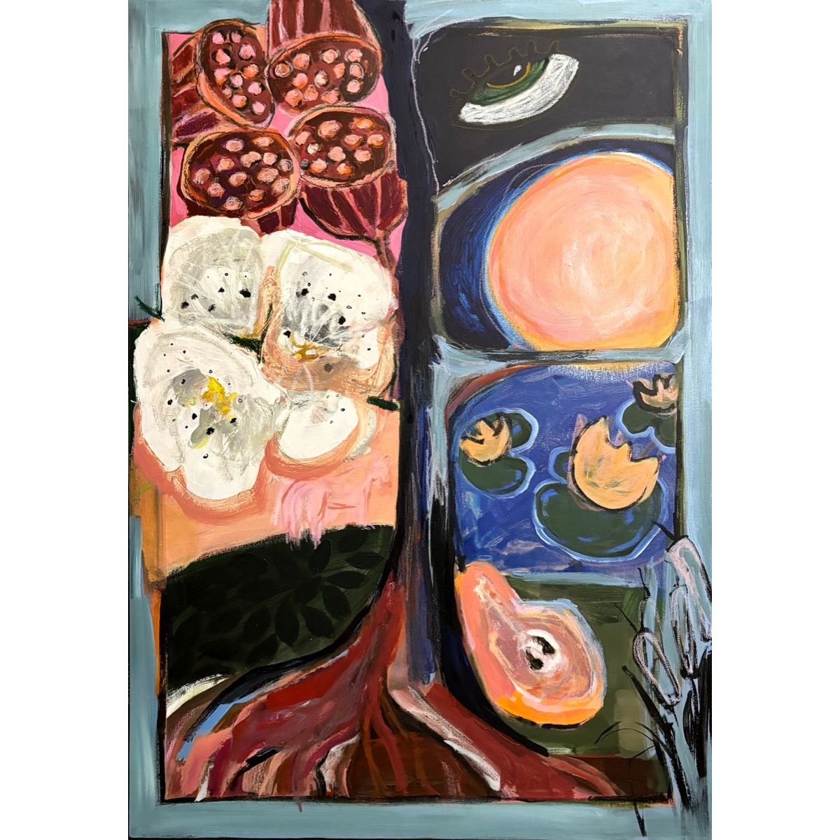 Красота неаккуратности, смелость наивности — центральная тема картин Ксении. Художница опирается на своё необычное чувство цвета, использует сочетание цветовых пятен и ботанических форм