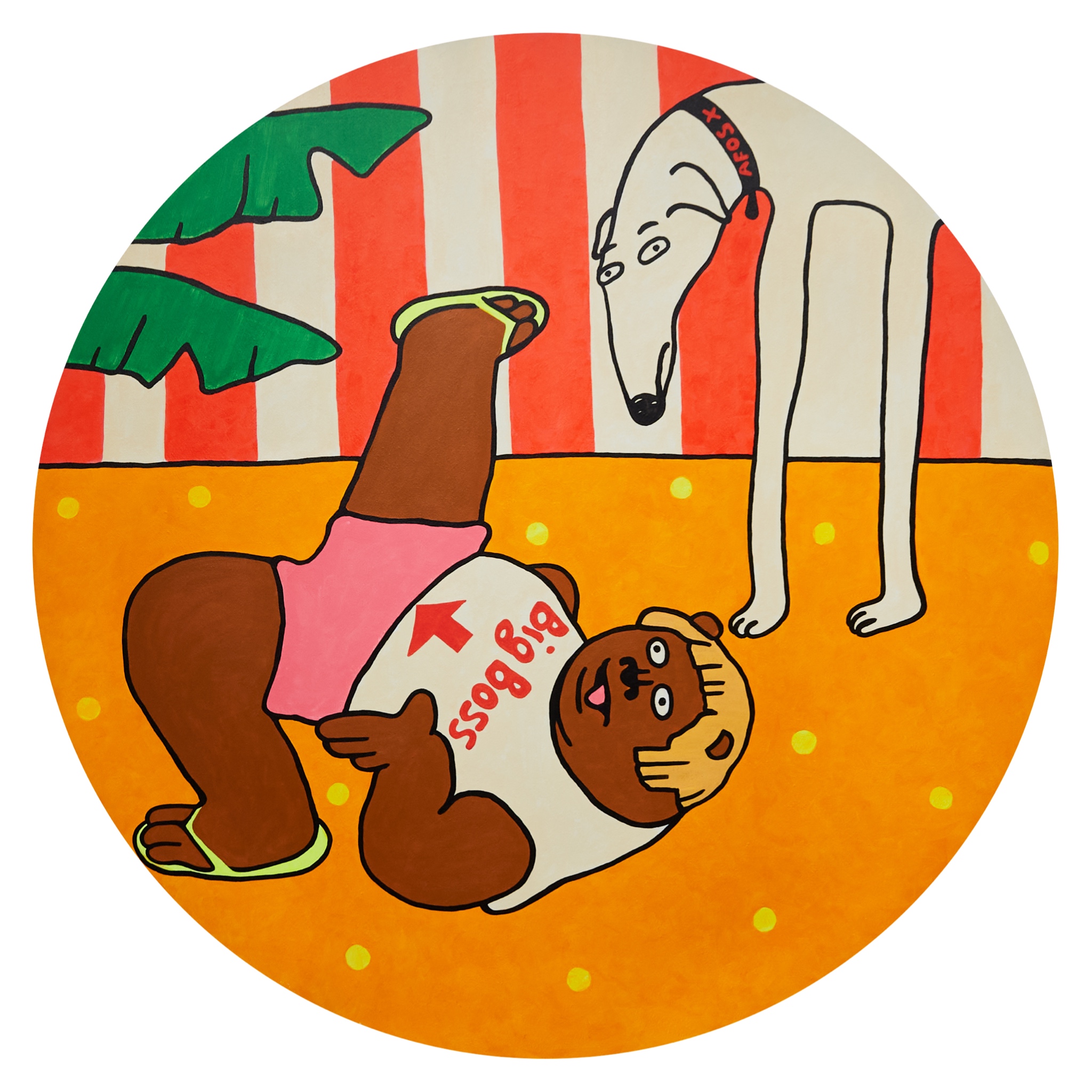 Принятие кринжа прошлого. Да. Он тебе нравился. В твоё оправдание, пост-хардкор тогда был в моде. В его оправдание, он хотел соответствовать такой изящной и грациозной лани. Пришлось показать всю гибкость, на которую он способен. Работа была показана на персональной выставке Екатерины Ходыревой / Afos X «Принятие». Экспозиция познакомила зрителей с авторской вселенной STONED ANIMALS, наполненной яркими и ироничными персонажами. Каждый из героев проживает порой нелепую, но всегда захватывающую жизнь, иллюстрирующую личный опыт и приключения художницы. На выставке была представлена новая серия работ, посвященная теме принятия – себя, других и происходящего вокруг. Для художницы принятие – завершающий этап личного развития, который меняет точку зрения и вдохновляет на новые свершения.