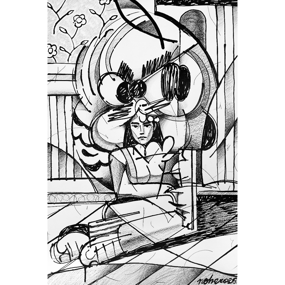 Бумага, акрил, карандаш Как часто перед сном вас захватывает поток навязчивых мыслей — сменяющих друг друга, словно кадры в бесконечной проекции? Воображение начинает работать автономно, создавая странные, порой абсурдные сценарии, лишь отчасти связанные с реальностью. В условиях нарастающего информационного шума, стремительного развития технологий и алгоритмов формируется особое состояние — фоновая тревожность, ставшая неотъемлемой частью современного опыта. Это тихое, но масштабное явление влияет на то, как мы думаем, чувствуем и воспринимаем будущее. Не случайно психотерапия превратилась в один из символов нашего времени. Под воздействием внешних факторов воображение способно конструировать настолько яркие и убедительные образы возможного будущего, что реальность постепенно отступает на второй план. Этот механизм лежит в основе серии “Weird Thoughts”. Её персонажи словно растворяются в собственных фантазиях: их силуэты размыты, в то время как воображаемые миры обретают плотность, насыщенность и визуальную выразительность. Художественный язык серии строится на контрасте — между блеклой, ускользающей реальностью и гипертрофированным, эклектичным пространством внутренних образов. Здесь страхи обретают форму: кто-то, охваченный тревогой перед катастрофами, населяет свои мысли чудовищами, сжигающими города; кто-то, одержимый идеей вечной молодости, мчится в фантазийном кабриолете-пилюле сквозь ландшафты собственного сознания. В этих сюжетах легко узнать себя. И, возможно, благодаря намеренно насыщенной, местами наивной живописной манере, зритель получает шанс отстраниться, взглянуть на свои тревоги со стороны — и затем вернуться к реальности, к её подлинной, живой и многослойной палитре.