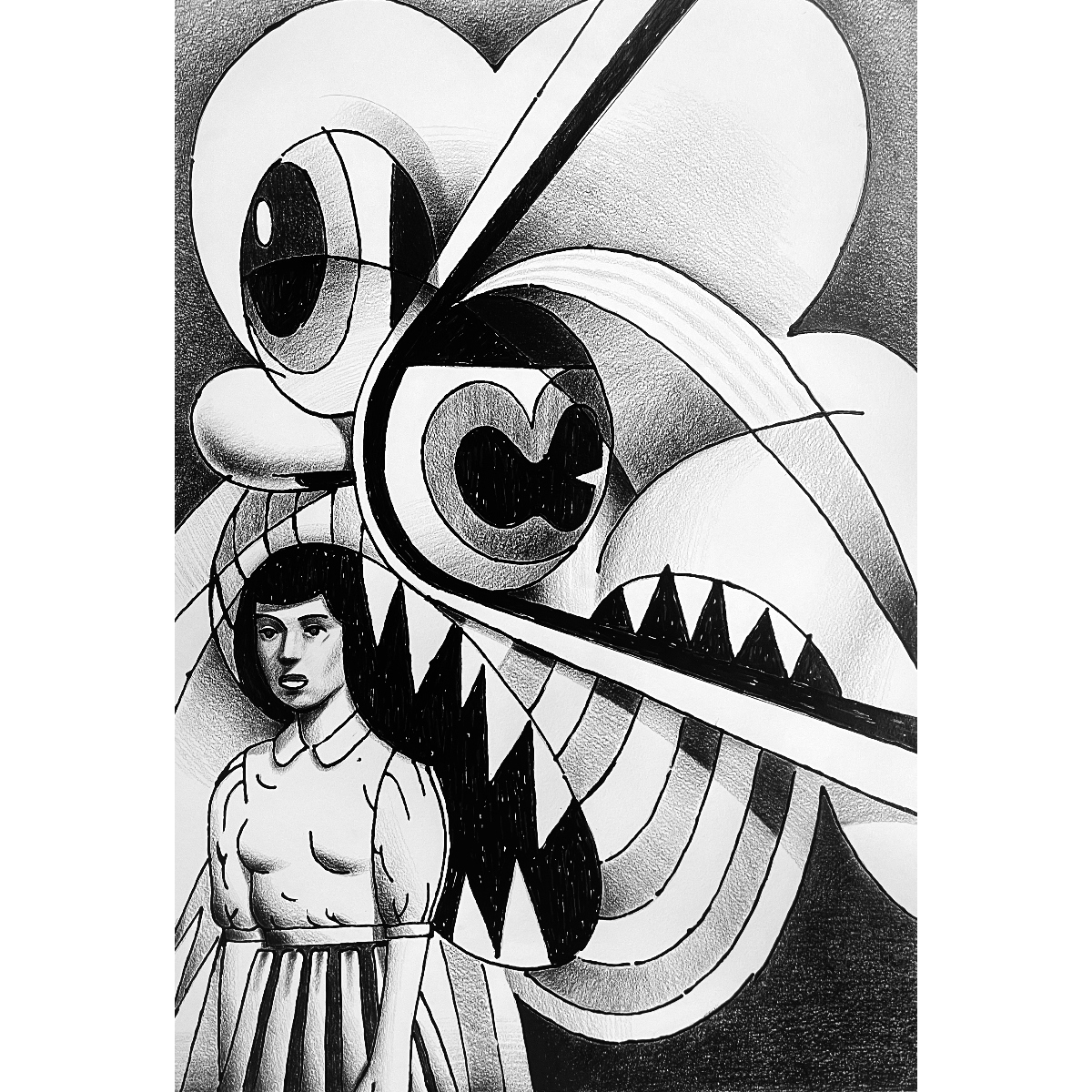 Бумага, акрил, карандаш Как часто перед сном вас захватывает поток навязчивых мыслей — сменяющих друг друга, словно кадры в бесконечной проекции? Воображение начинает работать автономно, создавая странные, порой абсурдные сценарии, лишь отчасти связанные с реальностью. В условиях нарастающего информационного шума, стремительного развития технологий и алгоритмов формируется особое состояние — фоновая тревожность, ставшая неотъемлемой частью современного опыта. Это тихое, но масштабное явление влияет на то, как мы думаем, чувствуем и воспринимаем будущее. Не случайно психотерапия превратилась в один из символов нашего времени. Под воздействием внешних факторов воображение способно конструировать настолько яркие и убедительные образы возможного будущего, что реальность постепенно отступает на второй план. Этот механизм лежит в основе серии “Weird Thoughts”. Её персонажи словно растворяются в собственных фантазиях: их силуэты размыты, в то время как воображаемые миры обретают плотность, насыщенность и визуальную выразительность. Художественный язык серии строится на контрасте — между блеклой, ускользающей реальностью и гипертрофированным, эклектичным пространством внутренних образов. Здесь страхи обретают форму: кто-то, охваченный тревогой перед катастрофами, населяет свои мысли чудовищами, сжигающими города; кто-то, одержимый идеей вечной молодости, мчится в фантазийном кабриолете-пилюле сквозь ландшафты собственного сознания. В этих сюжетах легко узнать себя. И, возможно, благодаря намеренно насыщенной, местами наивной живописной манере, зритель получает шанс отстраниться, взглянуть на свои тревоги со стороны — и затем вернуться к реальности, к её подлинной, живой и многослойной палитре.