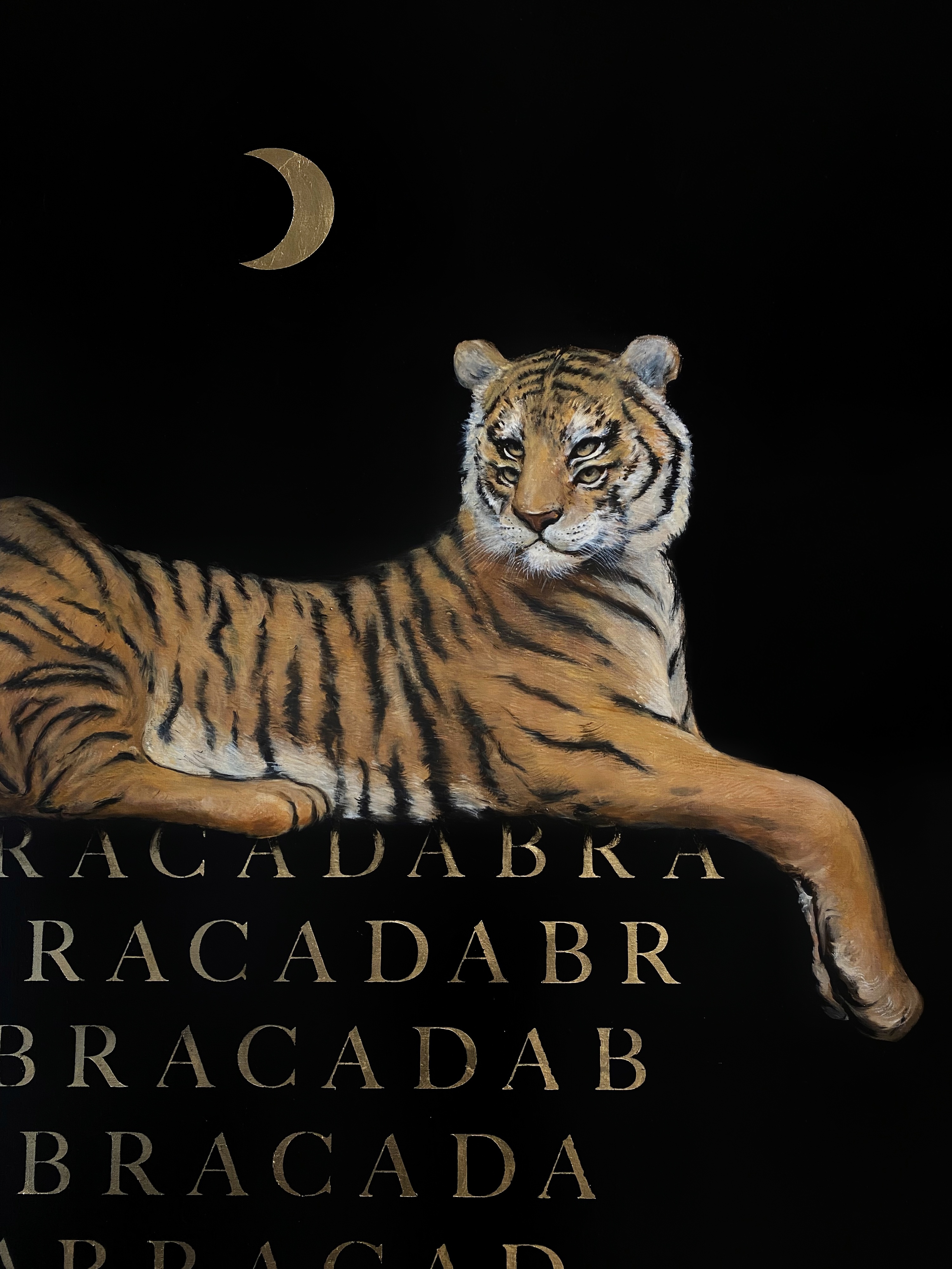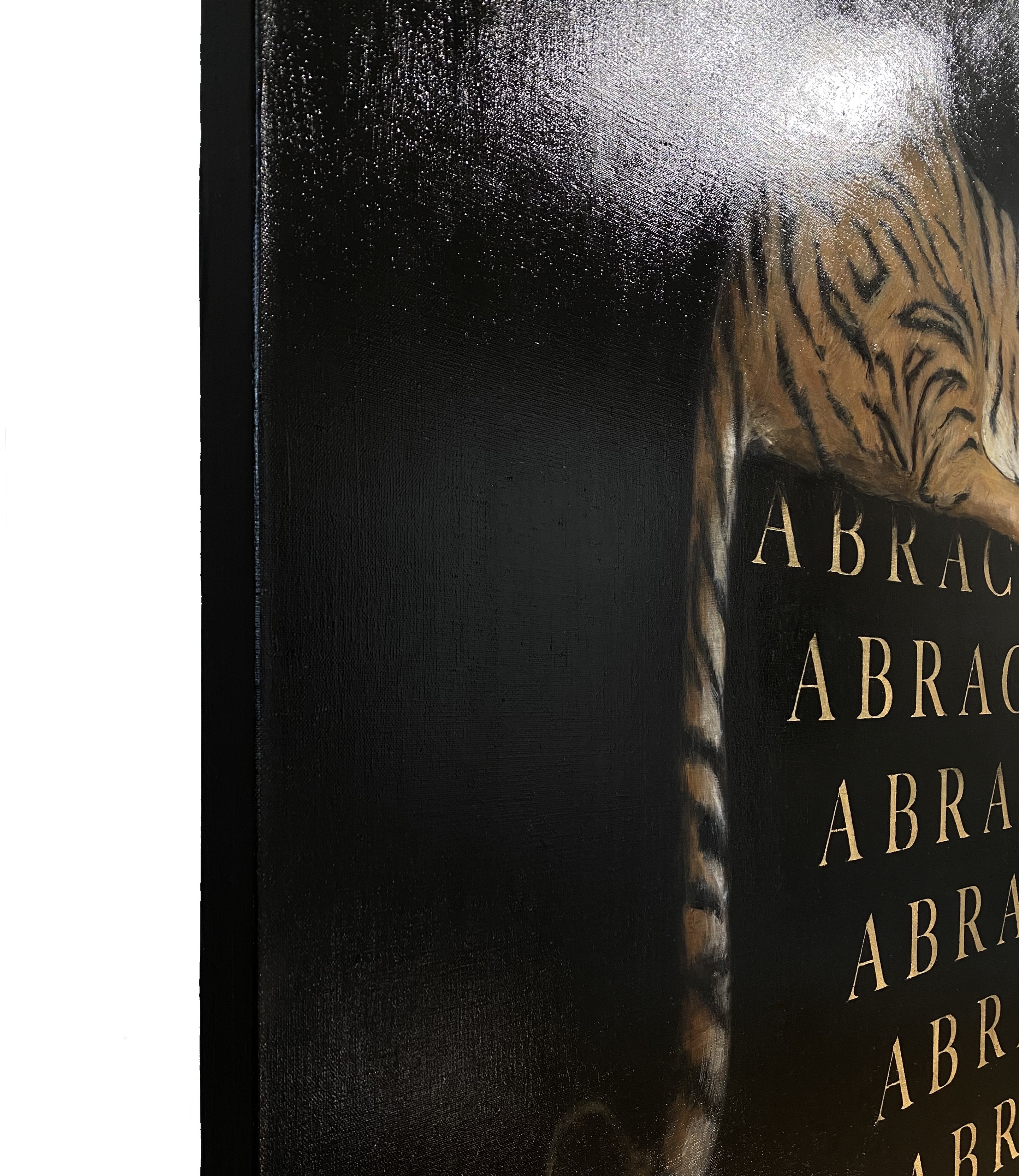 Льняной холст, масло, золотая поталь. Таинственное слово, перешедшее от древних евреев и греков в разных культурах и в разные эпохи имело множество значений. Ему приписывают магические свойства, оберегающие, но так же в средневековье его использовали для лечения от недугов, болезней, в том числе и душевных. Впервые упоминается в конце II века н. э. в медицинском трактате “De Medicina Praecepta” Саммоника, врача императора Септимия Севера для лечения сенной лихорадки. Слово выписывалось столбиком на дощечке 11 раз, при этом последняя буква каждый раз отсекалась. Получался треугольник. Такое постепенное укорачивание этого слова должно было уничтожать силу злого духа, и больной, надевая амулет, должен был постепенно выздоравливать. Эдакая мантра, молитва, заклинание - символ надежды и веры в лучший исход.