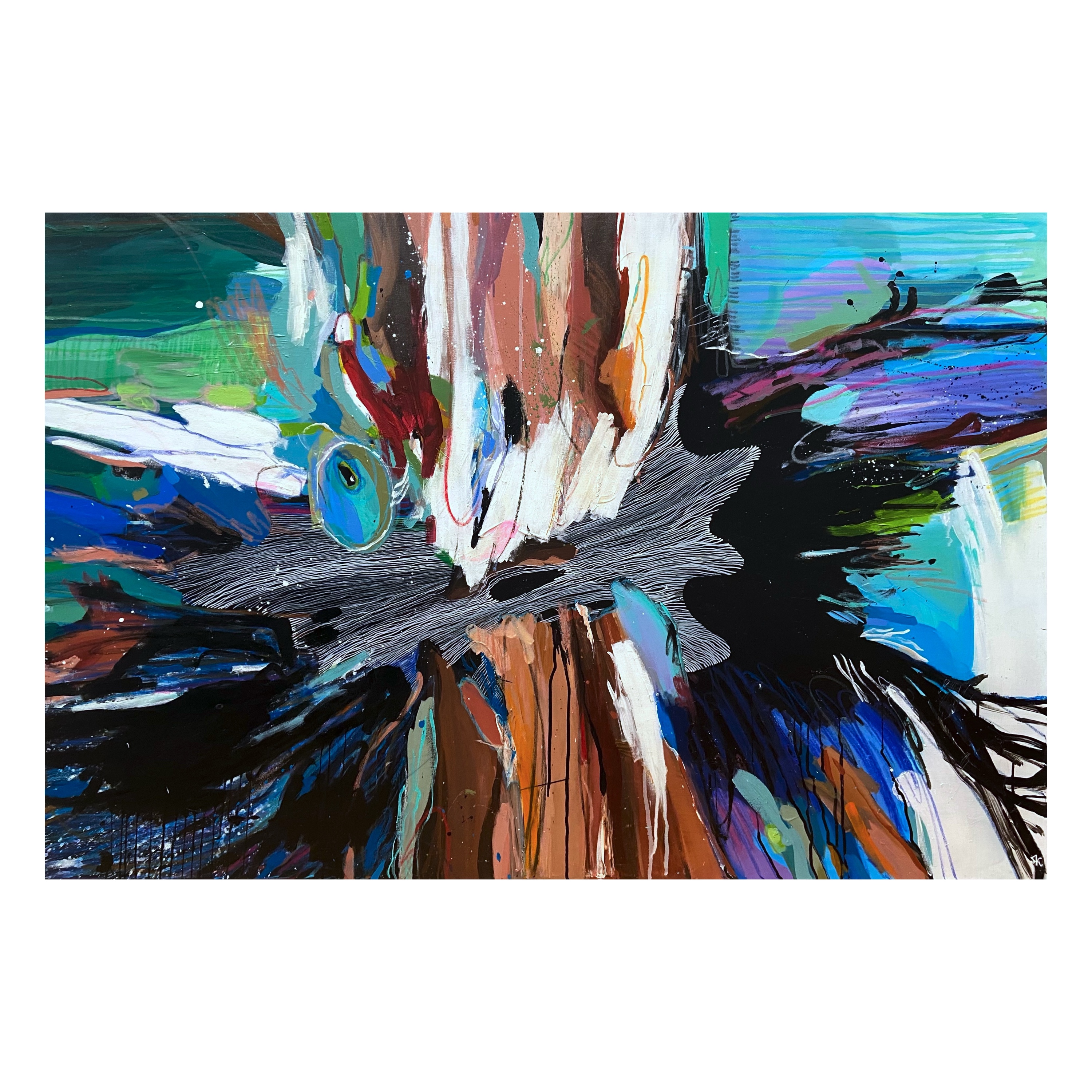 Акрил, масляная пастель, маркер, холст.