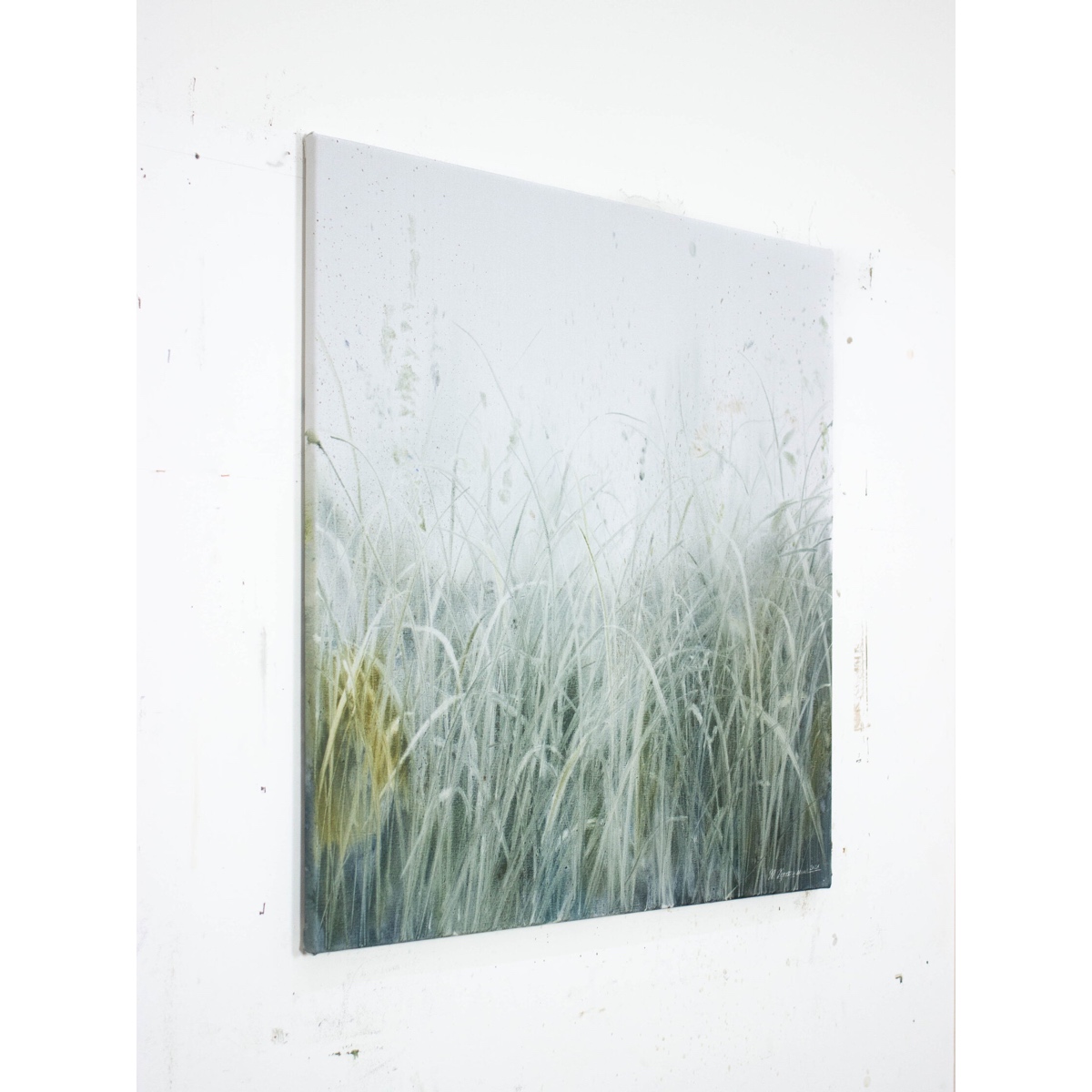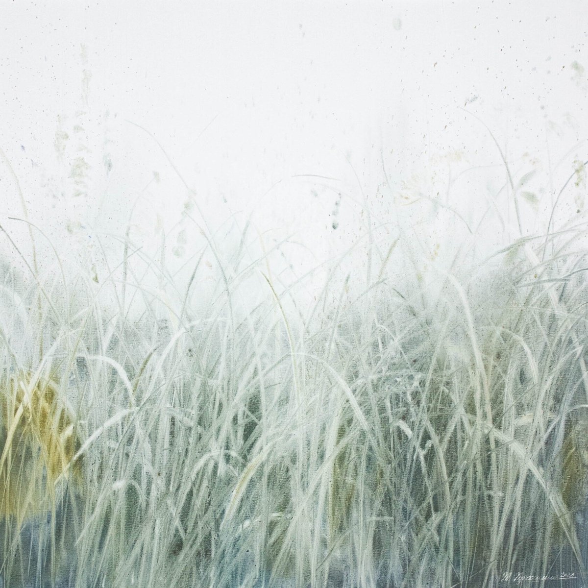 Работа из серии "травы". В этой серии через образ трав художница создает знакомые, комфортные и безопасные пространства, чтобы, запутавшись в их линиях, отключиться от внешнего шума и найти свои 'внутренние травы'. Образ пришел после поездки на Куршскую косу, где именно травы оказались единственным, что смогло остановить тонны безжизненных, всеуничтожающих песков. Поэтому для Татьяны они стали символом внутренней опоры – сил, способных сдержать внутренний дестрой и создать основу для жизни. Травы не сопротивляются естественным внешним воздействиям – ветру и дождю – а, напротив, гармонично с ними сосуществуют, олицетворяя экологичную, симбиотическую связь с внешним миром. Также, как в природе каждая травинка уникальна, так и в работах художницы они – оставленные на красочном слое 'отрицательные' и 'положительные' следы, которые невозможно воспроизвести в точности еще раз. При этом совмещение реалистического и абстрактного изображений в одно целое создают новые формы, созвучные нашему времени, в котором схлестывается так много: реальное и виртуальное, естественное и искусственное, личное и общественное.
