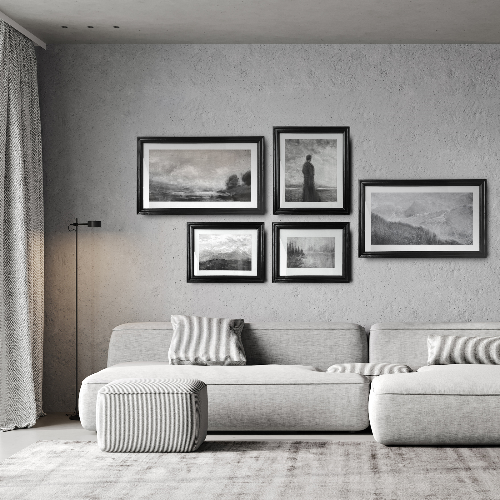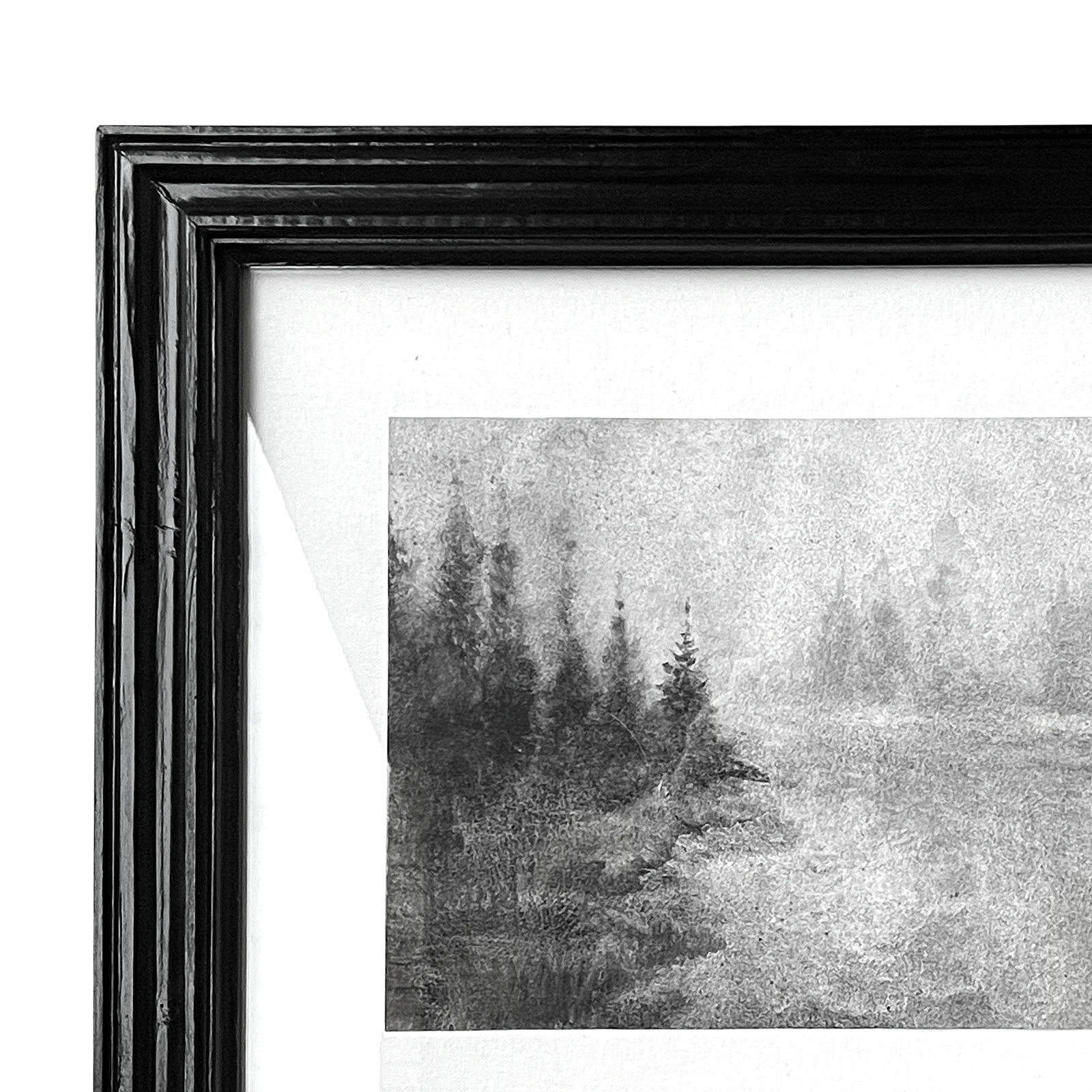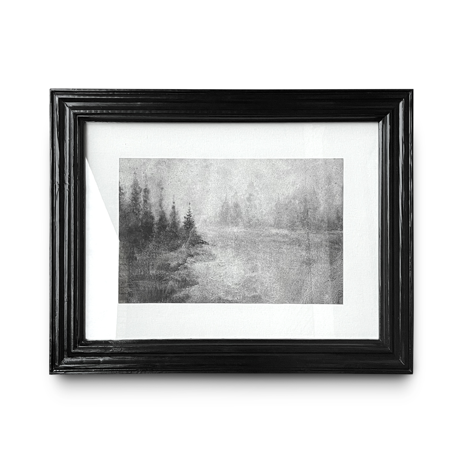 Размеры: 27 × 41 см, в раме 66 × 52 см. Акварель, жидкий уголь, бумага. Рама ручной работы, дерево. Тканевое паспарту.
