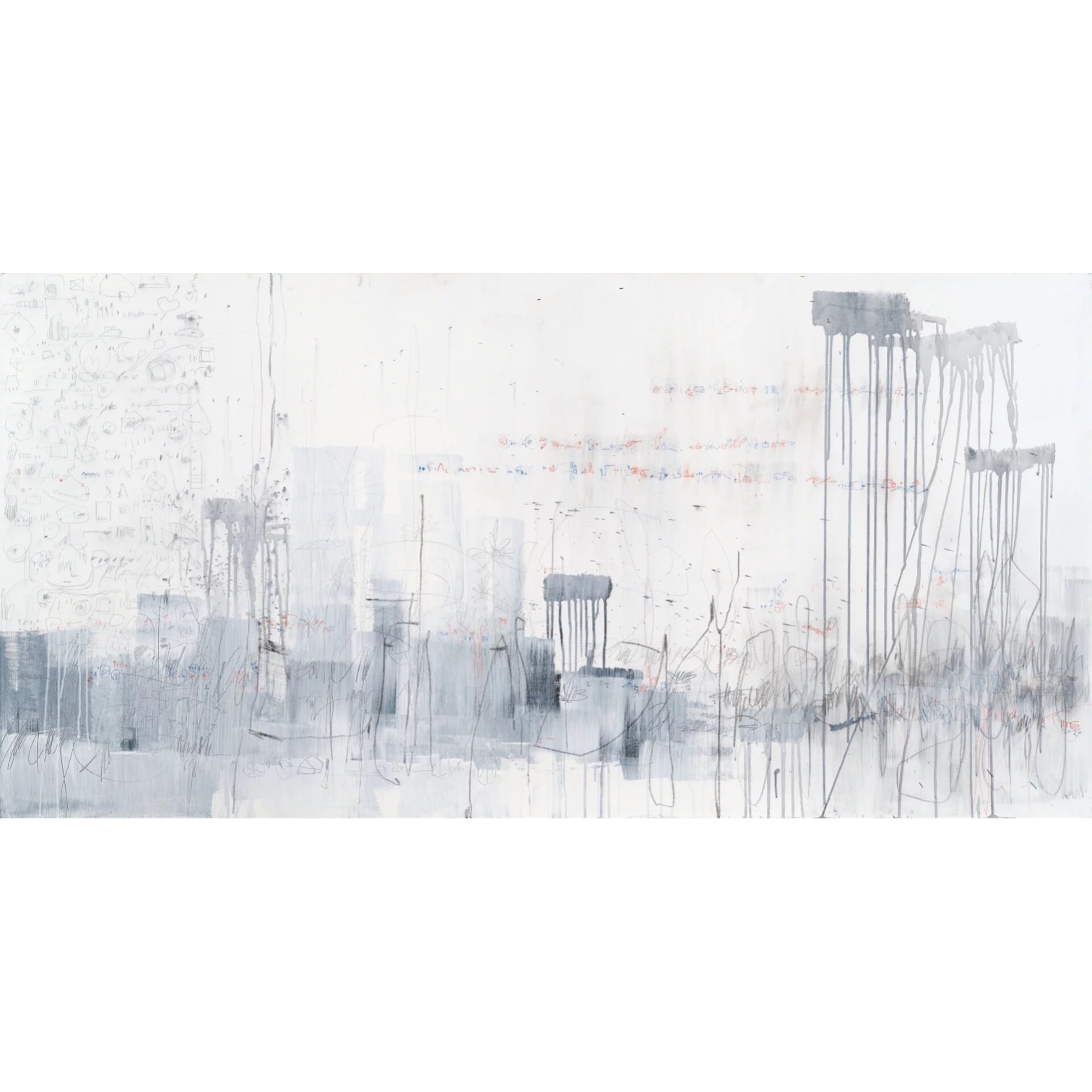 Акрил, графит, масло, тушь