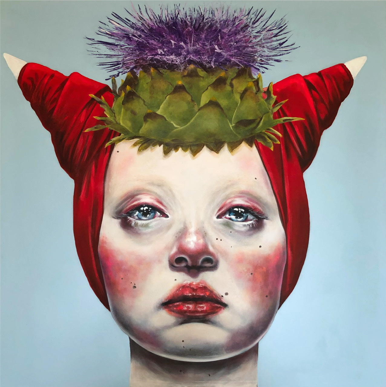 В портрете «Девушка и чертополох» Юлика Незванкина отражает силу и уверенность женщины, придав головному убору насыщенный красный цвет, а также способность постоять за себя, которую олицетворяет цветок чертополоха. Символически чертополох уходит корнями в древность, где в разных культурах его единогласно относят к символам вызова и возмездия. Девиз шотландского Ордена Чертополоха в переводе с латинского звучит как «Никто не тронет меня безнаказанно». В сюжете картины художница передает взросление и преодоление сложных жизненных испытаний, которые закаляют характер и отращивают шипы на беззащитном цветке.