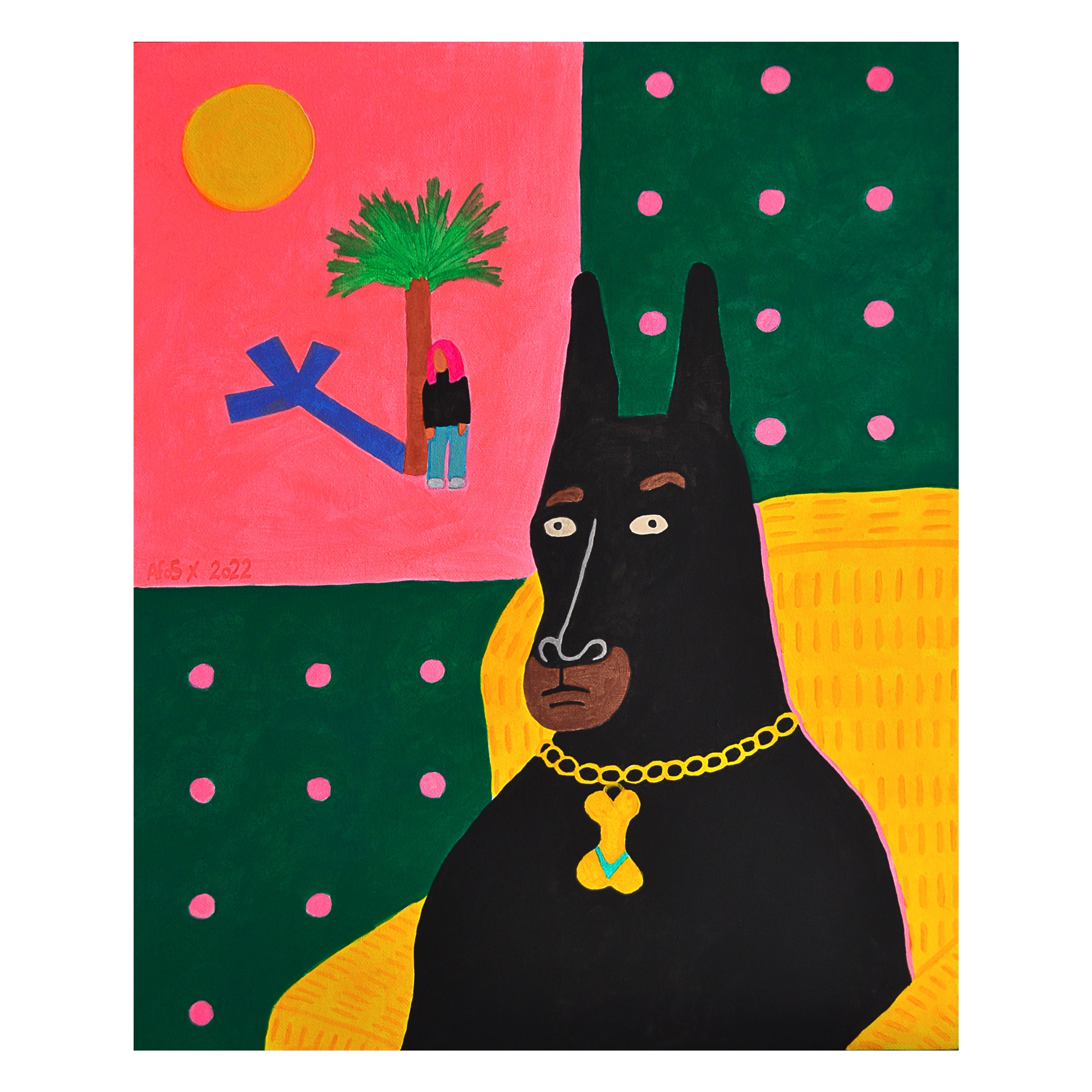 Эта картина про сурового и крепкого пёсика, которого зовут DOP€RMANN. Он слушает хип-хоп и любит уютные интерьеры.