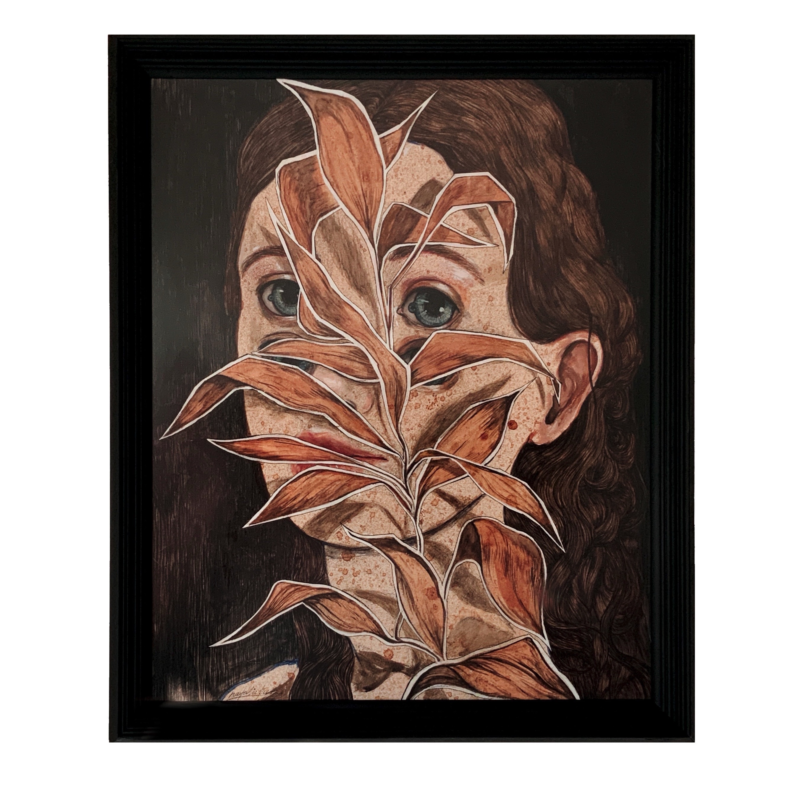 Смешанная техника на хлопковой бумаге. Деревянная рама. Ива часто присутствует в моих работах. Ее ветви и листья практически всегда имели для меня одно значение - память. Ива, которую мы сажали на участке родителей когда мне было 4 года - лишь этим летом я заметила какой невероятной высоты и мощи дерево стало. А будучи подростком я часто лазила в ее ветвях, прячась. Она часто болела и ее ветки «подстригали». На это смотреть было больно, но это помогало и Ива становилась лишь сильнее и мощнее. Меня это всегда удивляло, но как это наглядно. ⠀⠀ В работе «Скрытый элемент» я обратилась к моменту детства, когда эта Ива и я были маленькие, чтобы не забывать какой путь она прошла.