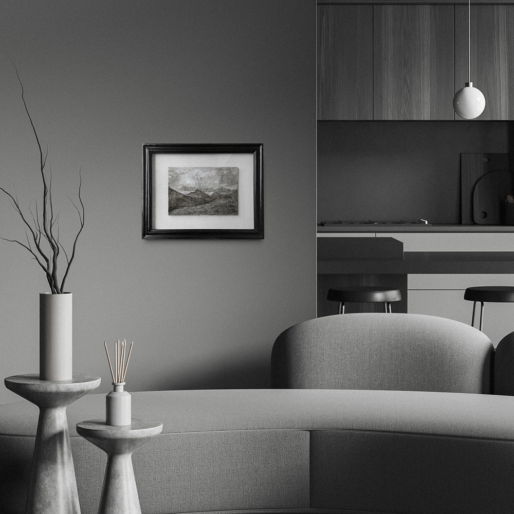 Серия работ «Крым» написана во время проживания в Орджоникидзе в 2021 году. Вдохновленная местными пейзажами, были написаны 7 картин формата А4. Эксперименты с красками очень тонко передают ту атмосферу и состояние, которые ощущались от этих удивительных видов. Работы оформлены в рамы из массива дерева, расположены на паспарту из грунтованного льна. Сама картина размещена на подложке, а стекло приподнято над работой, тем самым усиливается эффект глубины. Задняя сторона рамы оформлена бархатом. Размер рамы 40 см х 50 см.