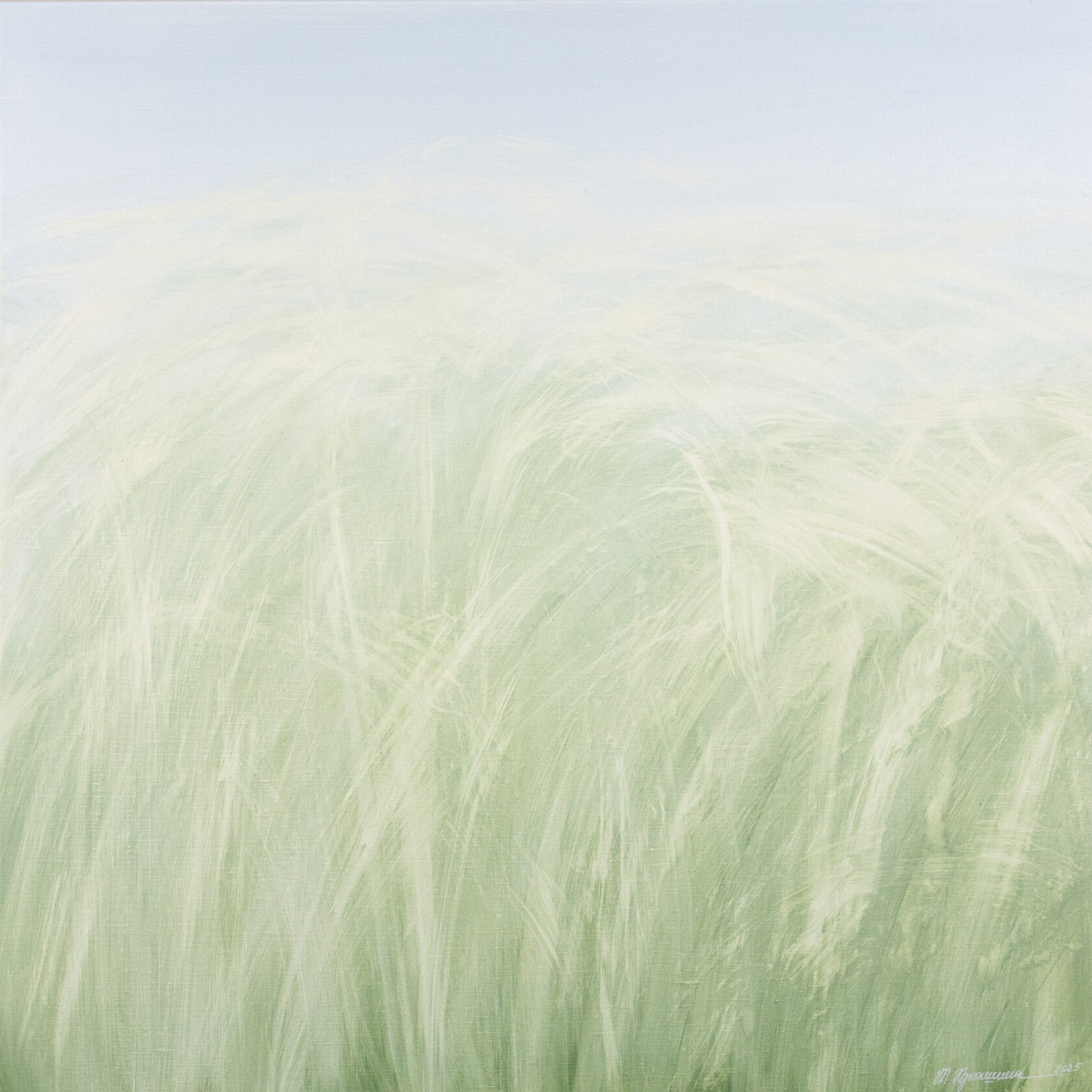 Полуабстрактная работа, в которой образ трав еле уловим, их линии протёрты легкими касаниями, обнажая скрытый внутренний естественный свет