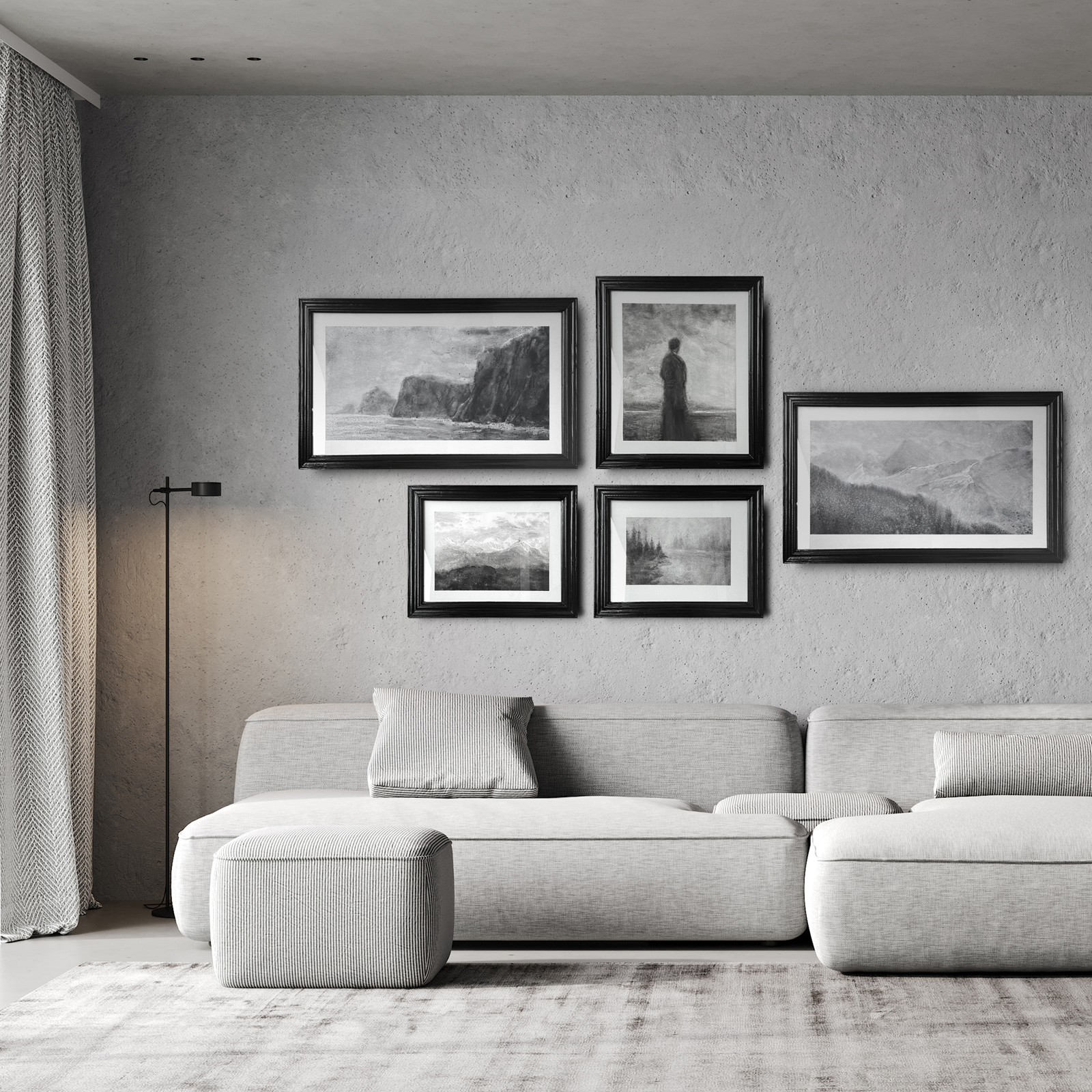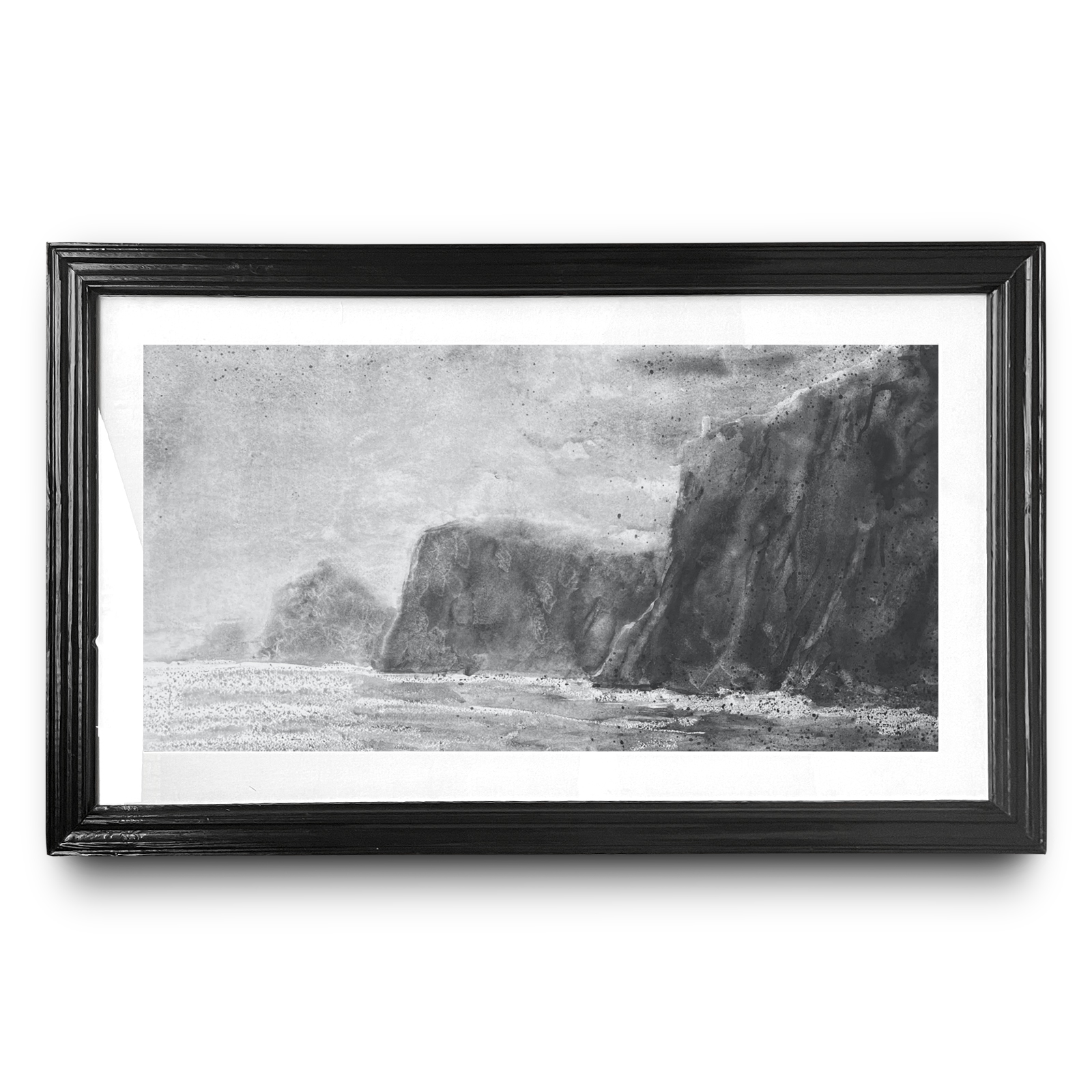 Размеры: 100 × 50 см, в раме 120 × 70 см. Акварель, жидкий уголь, бумага. Рама ручной работы, дерево. Тканевое паспарту.