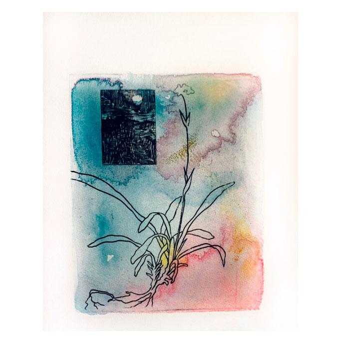 Офорт на меди с травлением, хлопковая бумага, масло, офортная краска, акварель, тушь