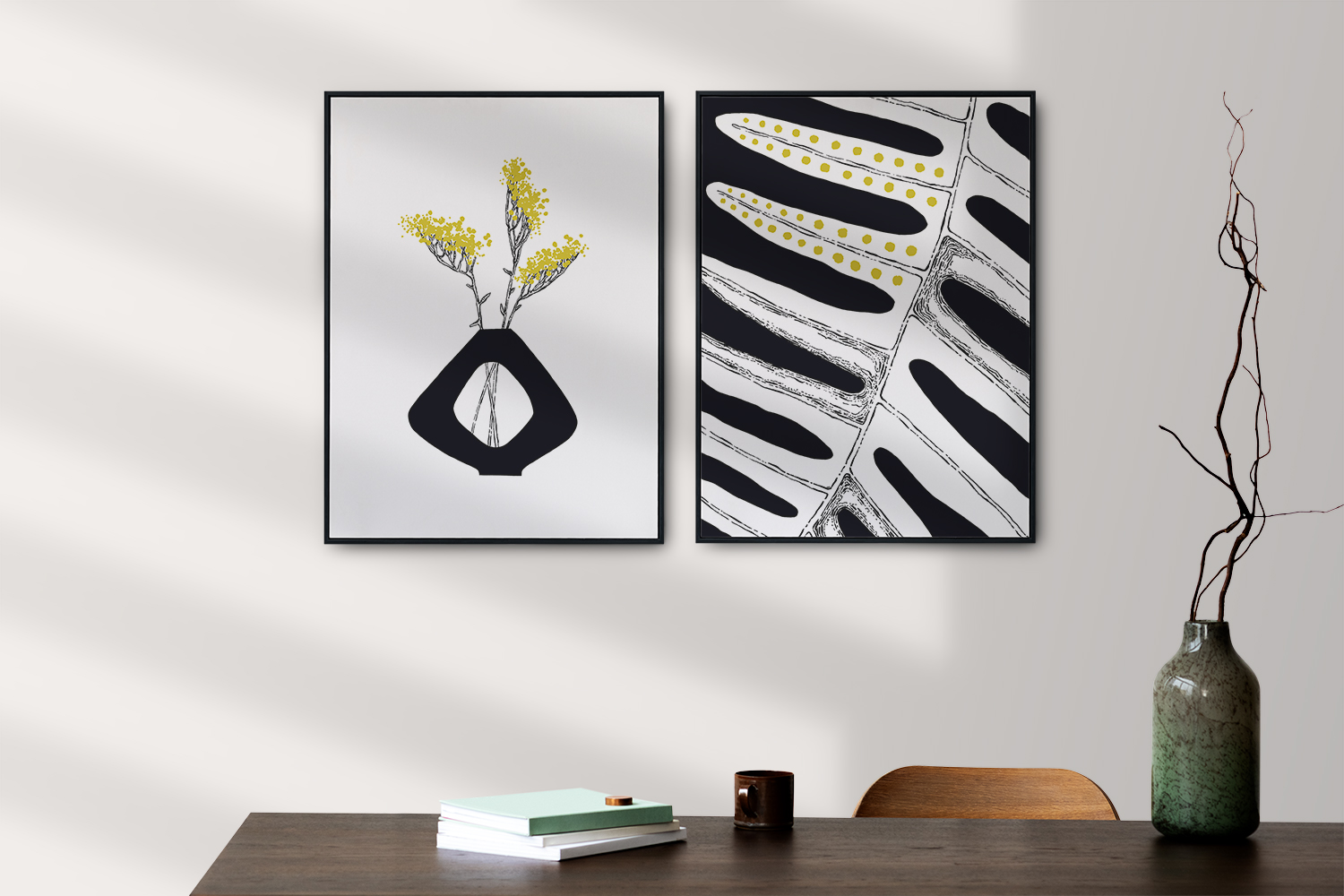 В рамках сотрудничества с художницей и иллюстратором Натальей Кутявиной галерея Reloft ART представляет серию принтов, вдохновленную природными формами растительного мира и притягательной глубиной черного цвета. Наталья сочетает природные силуэты растений с простыми геометричными формами и лаконичными цветовыми контрастами. Такой баланс создает новое актуальное прочтение ботанической иллюстрации, которая часто используется для декора интерьеров.