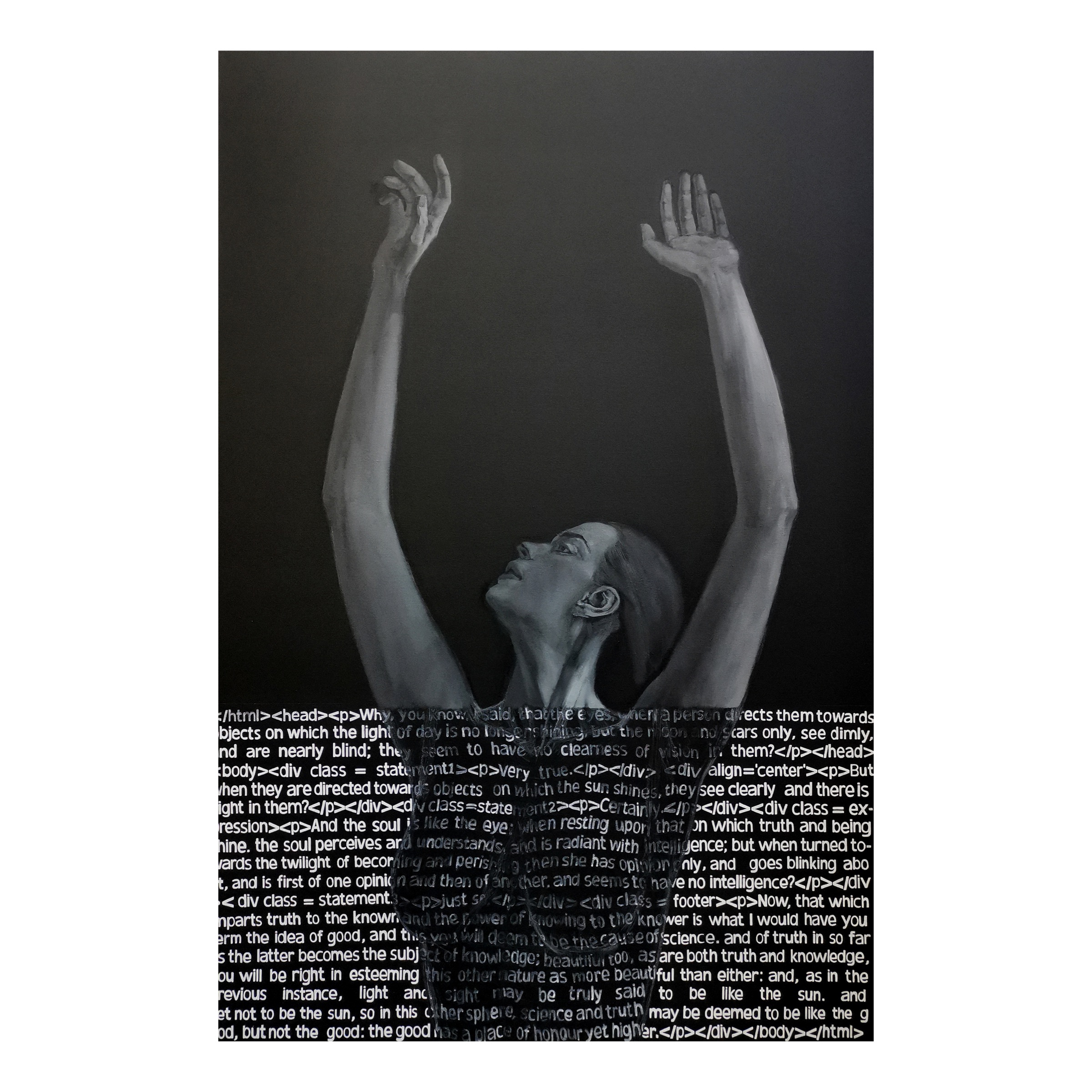 Холст, масло, акрил. Особое место в моем творчестве занимает тема внутренних переживаний и эмоций человека в современном мире. Мне нравится экспериментировать с материалами для достижения максимальной выразительности своей задумки: сочетать живопись с декоративными элементами, текстом или орнаментом. Ещё я люблю сталкивать контрастные образы друг с другом, чтобы они несмотря на свою противоположность, обрели гармоничное звучание и цельность.