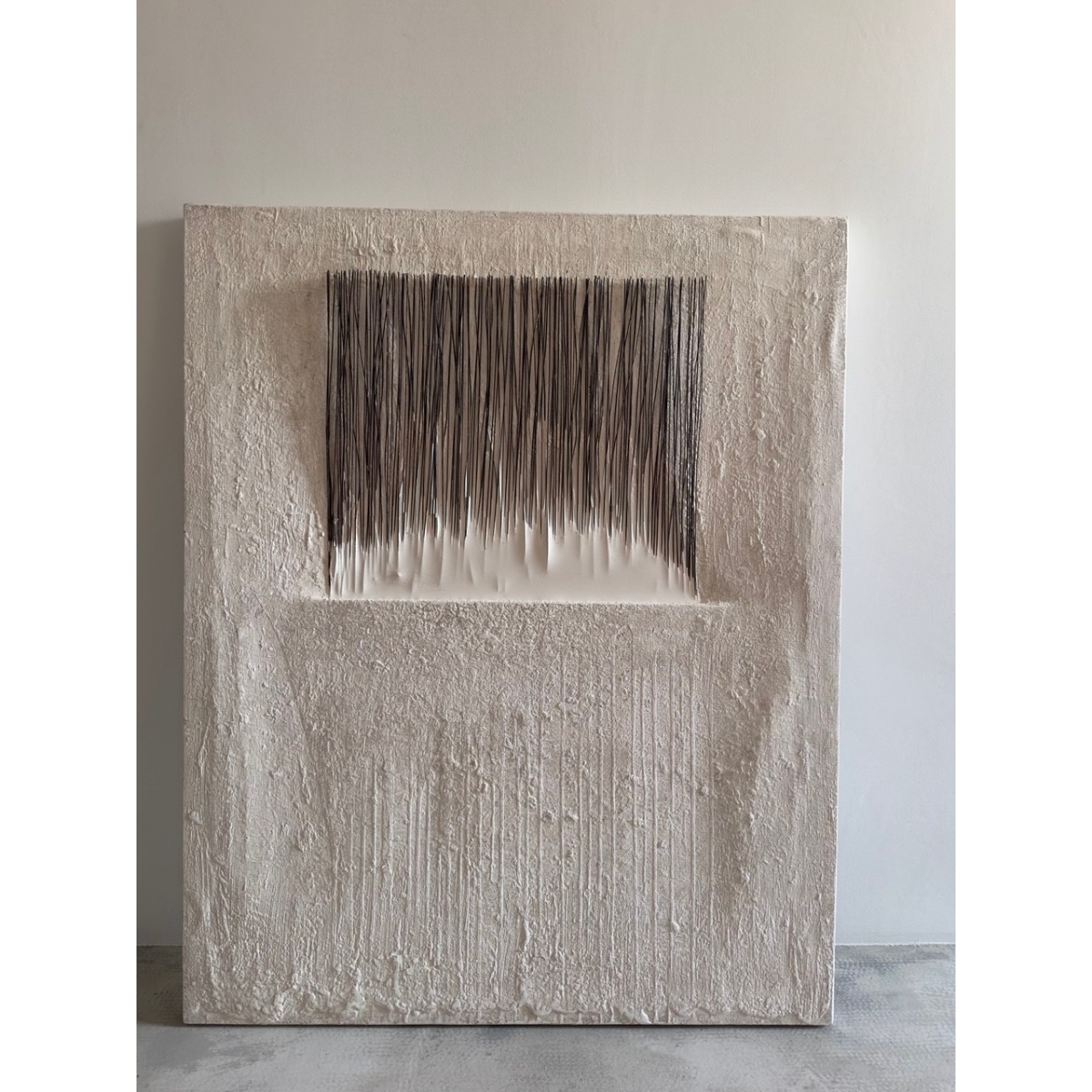 Ткань, бетон, краска, проволока Работа из серии "Тишина в пустоте". Мир неконтролируем. Форма существует лишь в состоянии становления, преображения, трансформации и изнашивания. Абстракция фиксирует мгновение процесса и позволяет ощутить его динамику и противоречивость. Природа в моих работах — не образ, а процесс. Органические формы с мягкими, расплывчатыми границами соседствуют с геометрией, создавая напряжение между контролем и хаосом. Разрушение, следы времени и коррозия не нарушают целостность, а раскрывают форму, насыщая её сенсорной информацией. Цвет подчинён созерцанию и смещает внимание от телесной силы к тишине и внутреннему присутствию. Функциональность может возникать, но не определяет работу — важнее состояние, которое она порождает. Мои работы созданы для погружения в собственные чувства. Истина проявляется не в объяснении, а в наблюдении, внимании к малому, в принятии несовершенства. Величие скрыто в деталях, красота — в безобразии.