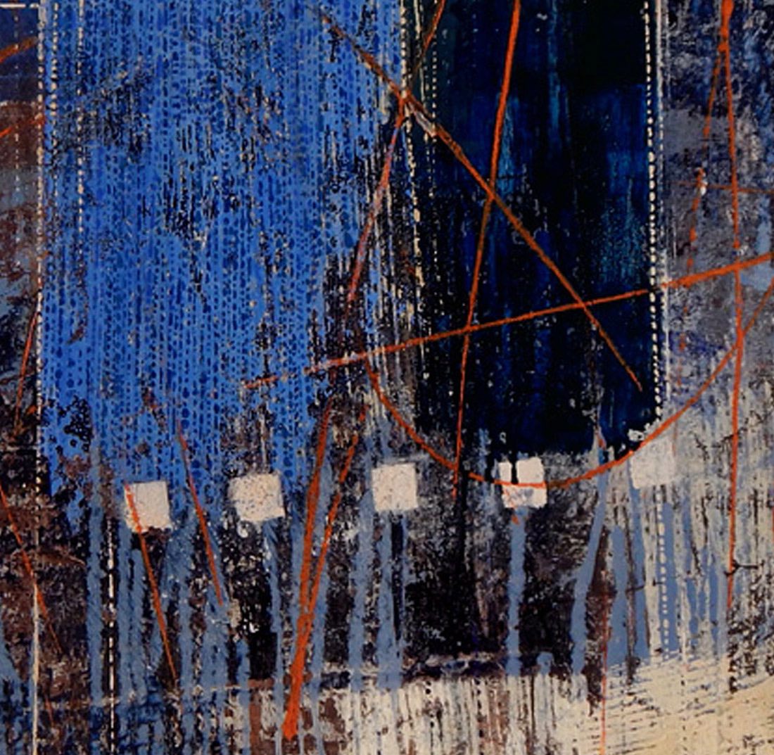 Магия города и эстетика городского ритма переданы Ольгой Шагиной в работе «Шел по городу волшебник». Яркие красные линии символизируют жизнь, пересекаясь на плоскости картины с другими жизнями