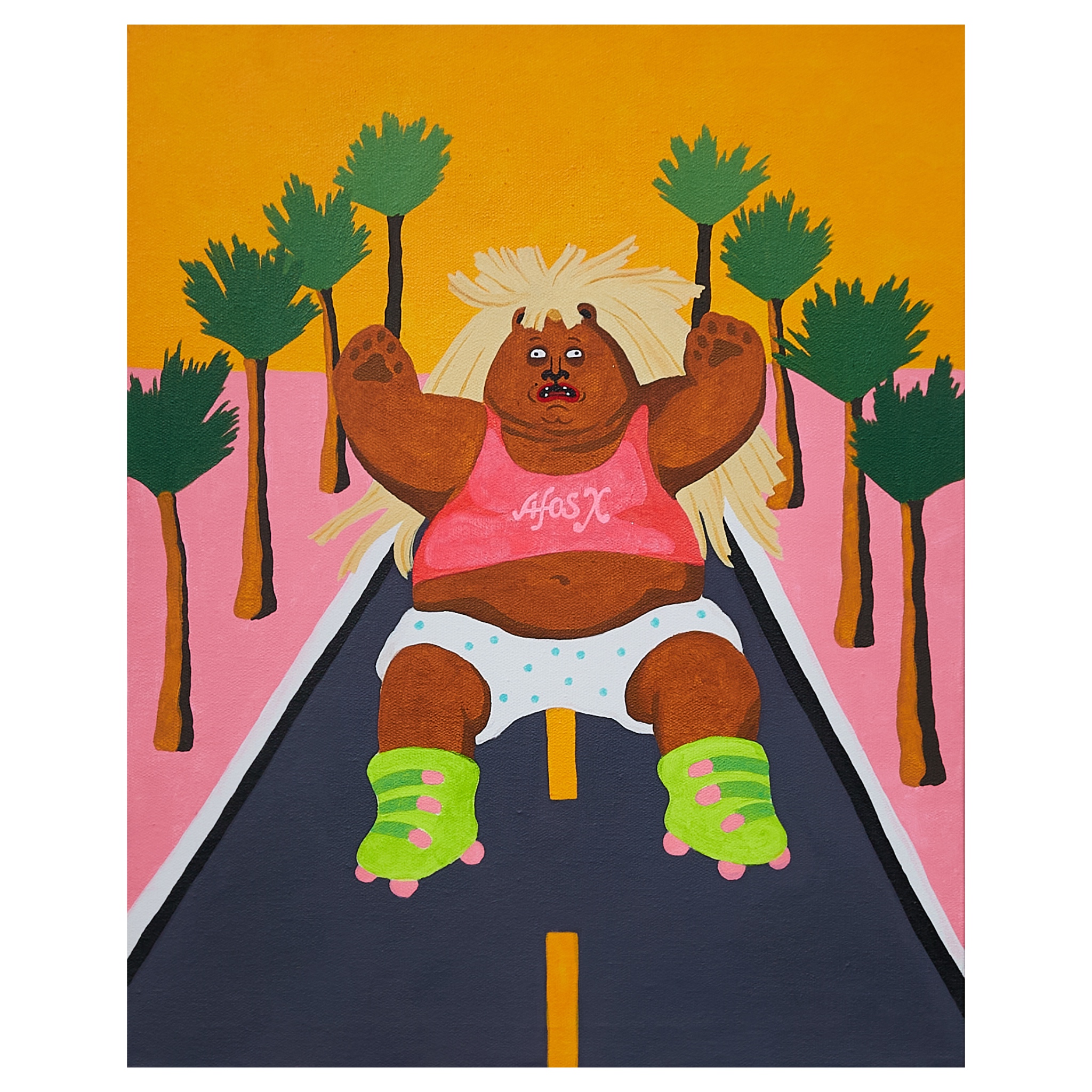Серия из 3 работ: Shit a brick, Свободный полет, Судьба каждого, кто ездит на электросамокате Котел сомнений и тревог - неотъемлемая часть процесса Анализа событий. Состояние летящего медведя Энди во время его не совсем успешных спортивных активностей - отправная точка ко всей выставке. Фактически я отображаю само Принятие. Уже не нужно думать “а где повернуть, чтобы не удариться”, “а как не налететь на камень”. Нет. Ты уже летишь. Уже нет место тревогам, анализу. Ты уже даже знаешь, чем всё закончится. Поэтому, остается только принять происходящее вокруг. Работа была показана на персональной выставке Екатерины Ходыревой / Afos X «Принятие». Экспозиция познакомила зрителей с авторской вселенной STONED ANIMALS, наполненной яркими и ироничными персонажами. Каждый из героев проживает порой нелепую, но всегда захватывающую жизнь, иллюстрирующую личный опыт и приключения художницы. На выставке была представлена новая серия работ, посвященная теме принятия – себя, других и происходящего вокруг. Для художницы принятие – завершающий этап личного развития, который меняет точку зрения и вдохновляет на новые свершения.