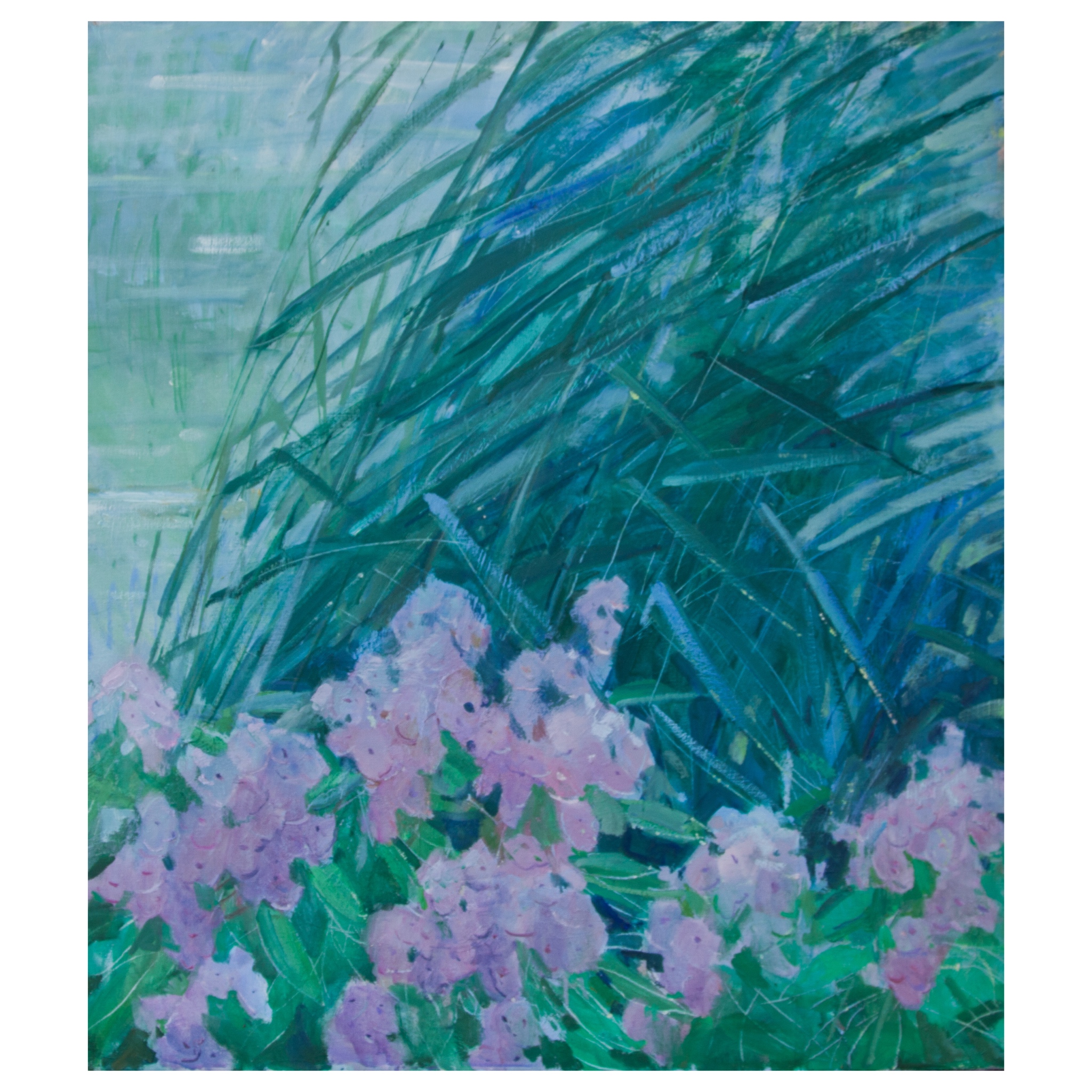 Наблюдение за природой, за тихой жизнью растения вдохновило художницу на создание этой работы. Однажды, стоя у пруда и прислушиваясь к тому, как шуршит камыш, она поняла, как это может выглядеть на полотне. Стояла ранняя осень и рядом отцветали флоксы, наполняя ароматом окружающее пространство. И эта серо-голубая стена камыша, и нежный цвет чашечек цветов создавали очень сложную, но одновременно нежную цветовую гармонию, которую захотелось сохранить на холсте и разделить свой восторг со зрителями. Так родился цветовой колорит этой работы. И когда в воображения родился замысел этой работы, Светлана поняла, что в самом духе этого холста есть отсылка к искусству японской гравюры. Сдержанный колорит , точность цветового пятна, графичность листьев камыша - все это захотелось наполнить аллюзиями к японской гравюре.