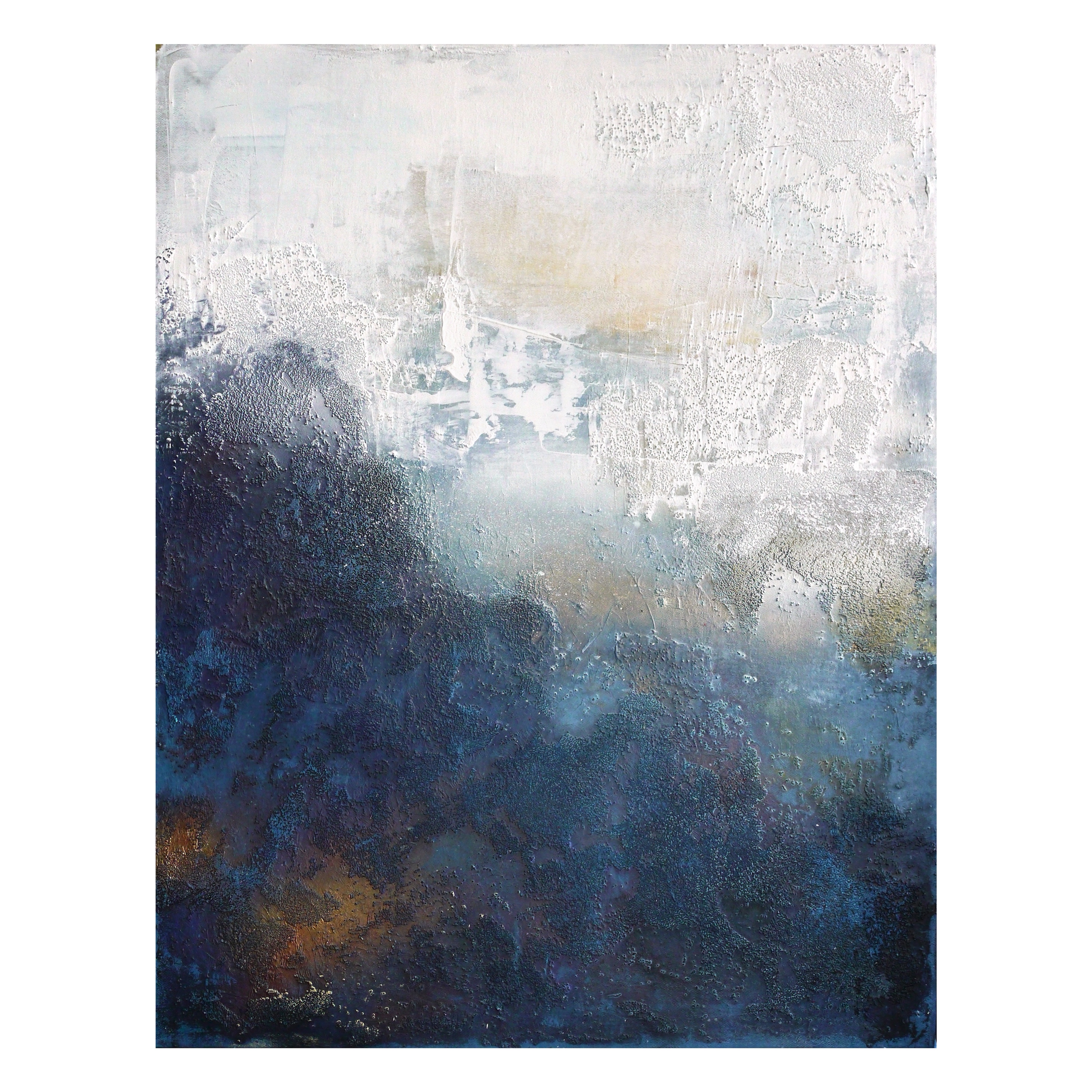 Серия «Лесная печать» Объемная фактурная живопись в этой серии становится новаторским ходом благодаря использованию текстуры растений. Ведущим приемом становится фактура и золотой цвет, нанесенный с помощью золотого аэрозоля. Холсты становятся полем эксперимента с внедрением впадин и кракелюров. Я активно моделирую формы и экспериментирую с наложением плоскостей краски. При общей условности изображений в них присутствует ассоциация на пейзажный рельеф. Текстура листьев превращается в сложный узор ветвей деревьев.