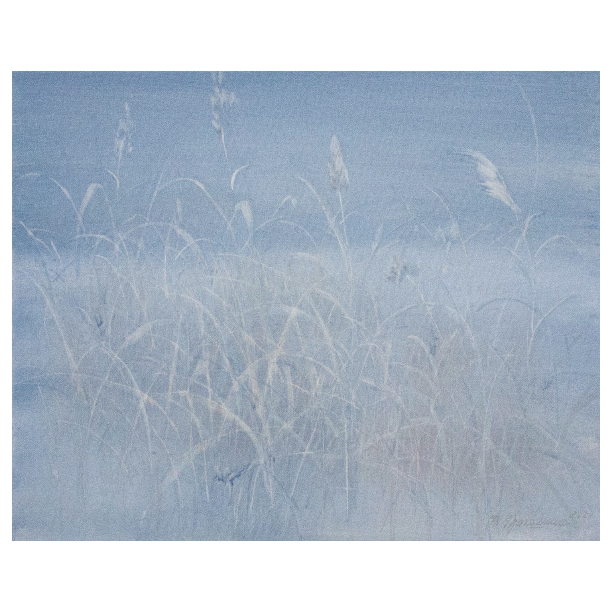 Работа из серии "травы. В этой серии через образ трав художница создает знакомые, комфортные и безопасные пространства, чтобы, запутавшись в их линиях, отключиться от внешнего шума и найти свои 'внутренние травы'. Образ пришел после поездки на Куршскую косу, где именно травы оказались единственным, что смогло остановить тонны безжизненных, всеуничтожающих песков. Поэтому для Татьяны они стали символом внутренней опоры – сил, способных сдержать внутренний дестрой и создать основу для жизни. Травы не сопротивляются естественным внешним воздействиям – ветру и дождю – а, напротив, гармонично с ними сосуществуют, олицетворяя экологичную, симбиотическую связь с внешним миром. Также, как в природе каждая травинка уникальна, так и в работах художницы они – оставленные на красочном слое 'отрицательные' и 'положительные' следы, которые невозможно воспроизвести в точности еще раз. При этом совмещение реалистического и абстрактного изображений в одно целое создают новые формы, созвучные нашему времени, в котором схлестывается так много: реальное и виртуальное, естественное и искусственное, личное и общественное.