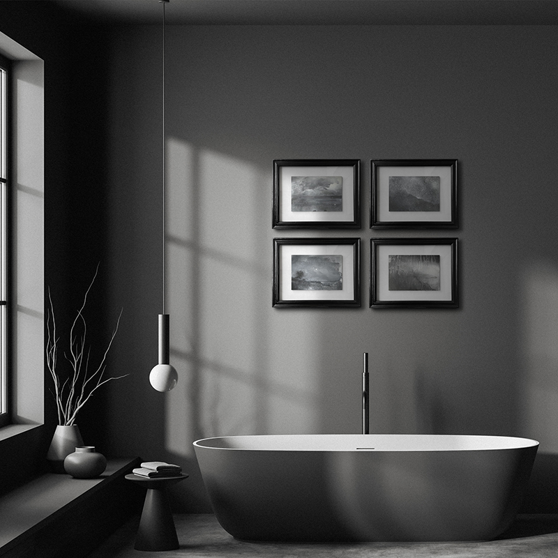 Серия работ «Крым» написана во время проживания в Орджоникидзе в 2021 году. Вдохновленная местными пейзажами, были написаны 7 картин формата А4. Эксперименты с красками очень тонко передают ту атмосферу и состояние, которые ощущались от этих удивительных видов. Работы оформлены в рамы из массива дерева, расположены на паспарту из грунтованного льна. Сама картина размещена на подложке, а стекло приподнято над работой, тем самым усиливается эффект глубины. Задняя сторона рамы оформлена бархатом. Размер рамы 40 см х 50 см.