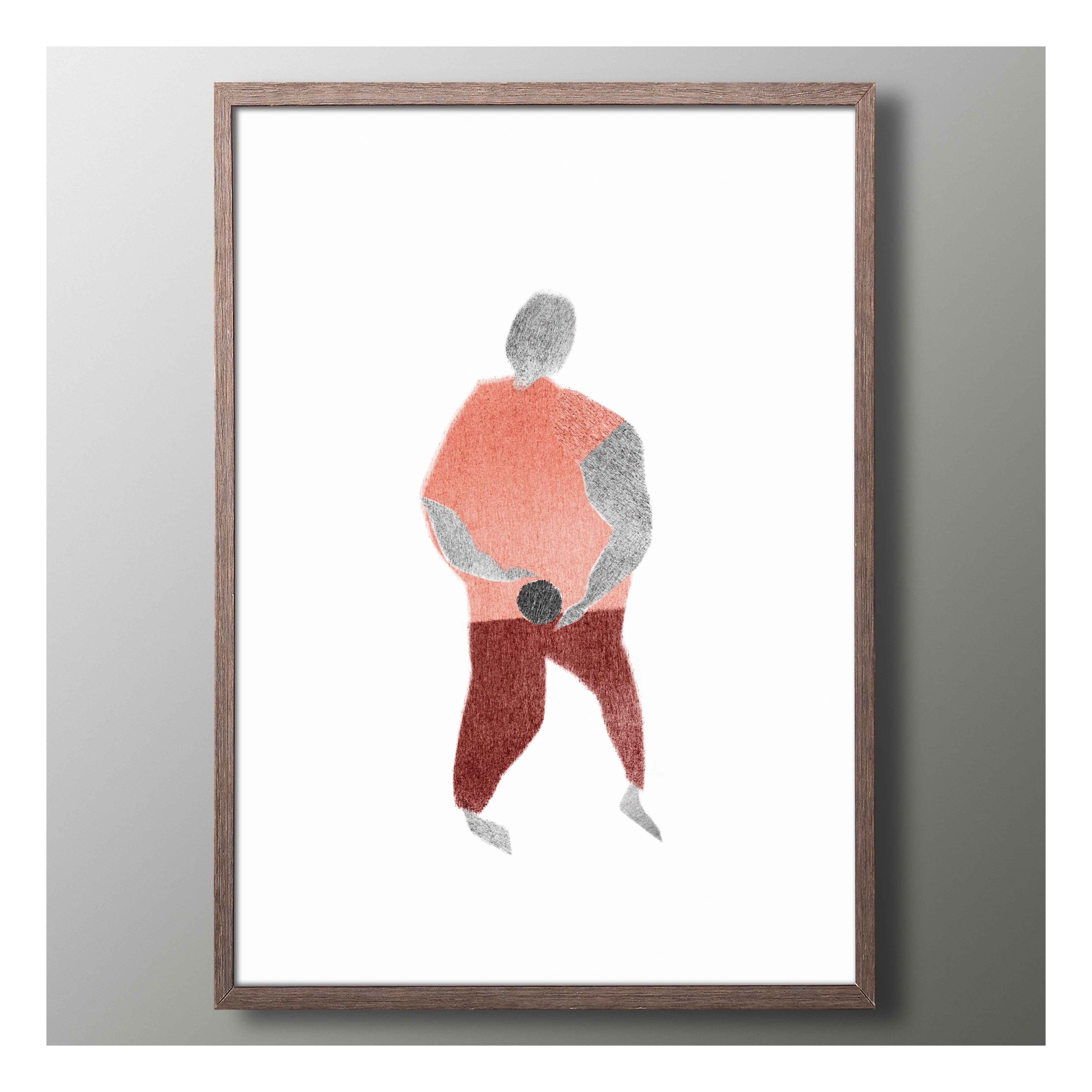 Серия принтов «Лето» изображает персонажей, объединенных мотивом игры в мяч и атмосферой летней беззаботности. Приглушенные оттенки красного в одежде героев напоминают зрителю о жарких солнечных днях, полных энергии и веселья. Работы выполнены в трафаретной технике.