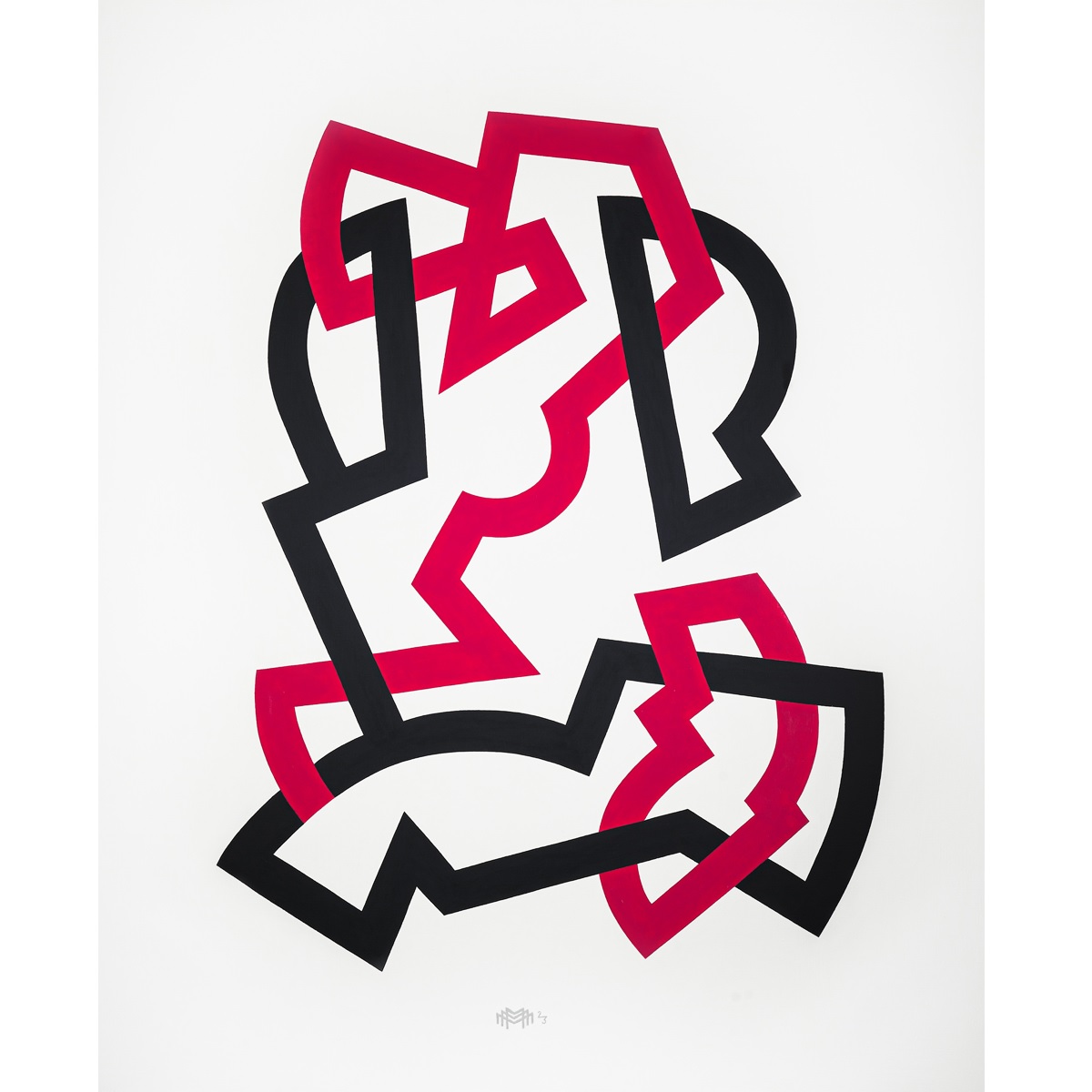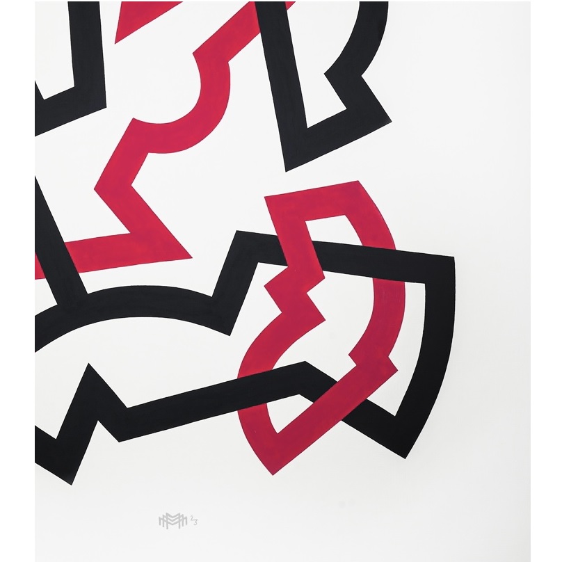 Переплетение линий и форм создает общую, цельную конструкцию. Некоторые фрагменты отдаленно напоминают части мужской и женской фигуры. Статичные, соединенные общей формой, они находятся в постоянном движении, стремясь выйти за пределы плоскости холста.