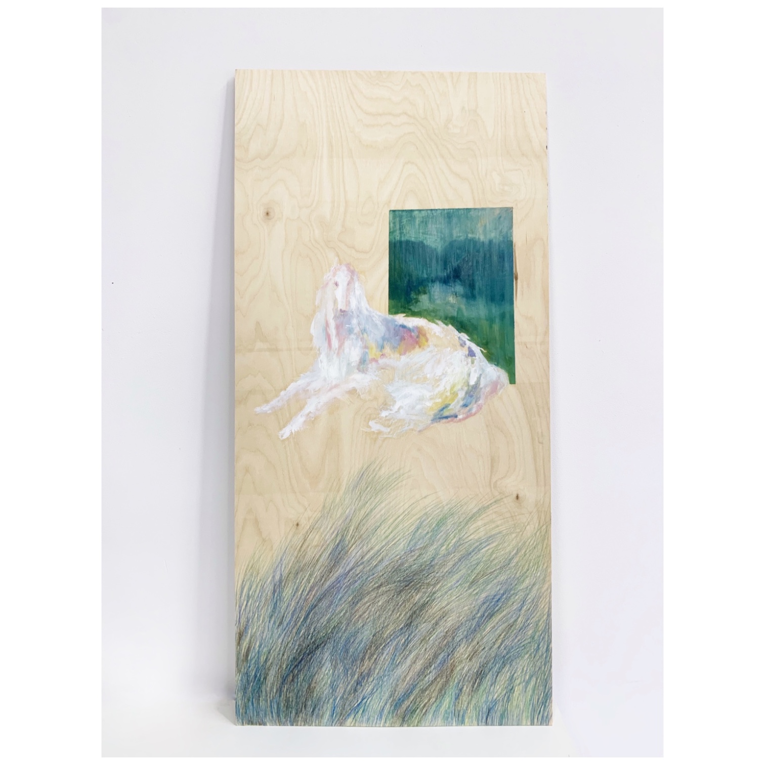Деревянный лист, масло, карандаши.
