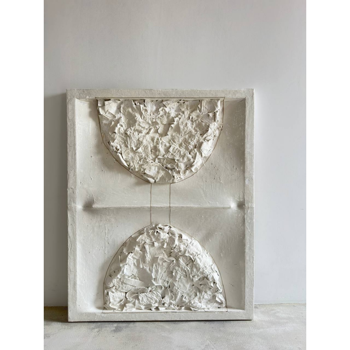 Ткань, бетон, краска, проволока Работа из серии "Тишина в пустоте". Мир неконтролируем. Форма существует лишь в состоянии становления, преображения, трансформации и изнашивания. Абстракция фиксирует мгновение процесса и позволяет ощутить его динамику и противоречивость. Природа в моих работах — не образ, а процесс. Органические формы с мягкими, расплывчатыми границами соседствуют с геометрией, создавая напряжение между контролем и хаосом. Разрушение, следы времени и коррозия не нарушают целостность, а раскрывают форму, насыщая её сенсорной информацией. Цвет подчинён созерцанию и смещает внимание от телесной силы к тишине и внутреннему присутствию. Функциональность может возникать, но не определяет работу — важнее состояние, которое она порождает. Мои работы созданы для погружения в собственные чувства. Истина проявляется не в объяснении, а в наблюдении, внимании к малому, в принятии несовершенства. Величие скрыто в деталях, красота — в безобразии.