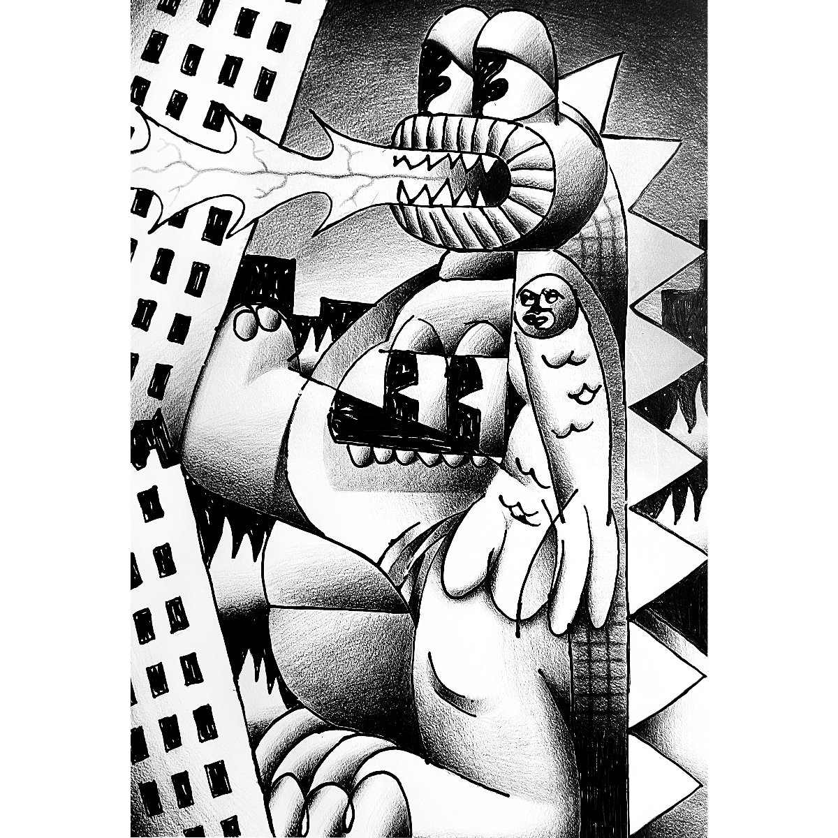 Бумага, акрил, карандаш Как часто перед сном вас захватывает поток навязчивых мыслей — сменяющих друг друга, словно кадры в бесконечной проекции? Воображение начинает работать автономно, создавая странные, порой абсурдные сценарии, лишь отчасти связанные с реальностью. В условиях нарастающего информационного шума, стремительного развития технологий и алгоритмов формируется особое состояние — фоновая тревожность, ставшая неотъемлемой частью современного опыта. Это тихое, но масштабное явление влияет на то, как мы думаем, чувствуем и воспринимаем будущее. Не случайно психотерапия превратилась в один из символов нашего времени. Под воздействием внешних факторов воображение способно конструировать настолько яркие и убедительные образы возможного будущего, что реальность постепенно отступает на второй план. Этот механизм лежит в основе серии “Weird Thoughts”. Её персонажи словно растворяются в собственных фантазиях: их силуэты размыты, в то время как воображаемые миры обретают плотность, насыщенность и визуальную выразительность. Художественный язык серии строится на контрасте — между блеклой, ускользающей реальностью и гипертрофированным, эклектичным пространством внутренних образов. Здесь страхи обретают форму: кто-то, охваченный тревогой перед катастрофами, населяет свои мысли чудовищами, сжигающими города; кто-то, одержимый идеей вечной молодости, мчится в фантазийном кабриолете-пилюле сквозь ландшафты собственного сознания. В этих сюжетах легко узнать себя. И, возможно, благодаря намеренно насыщенной, местами наивной живописной манере, зритель получает шанс отстраниться, взглянуть на свои тревоги со стороны — и затем вернуться к реальности, к её подлинной, живой и многослойной палитре.