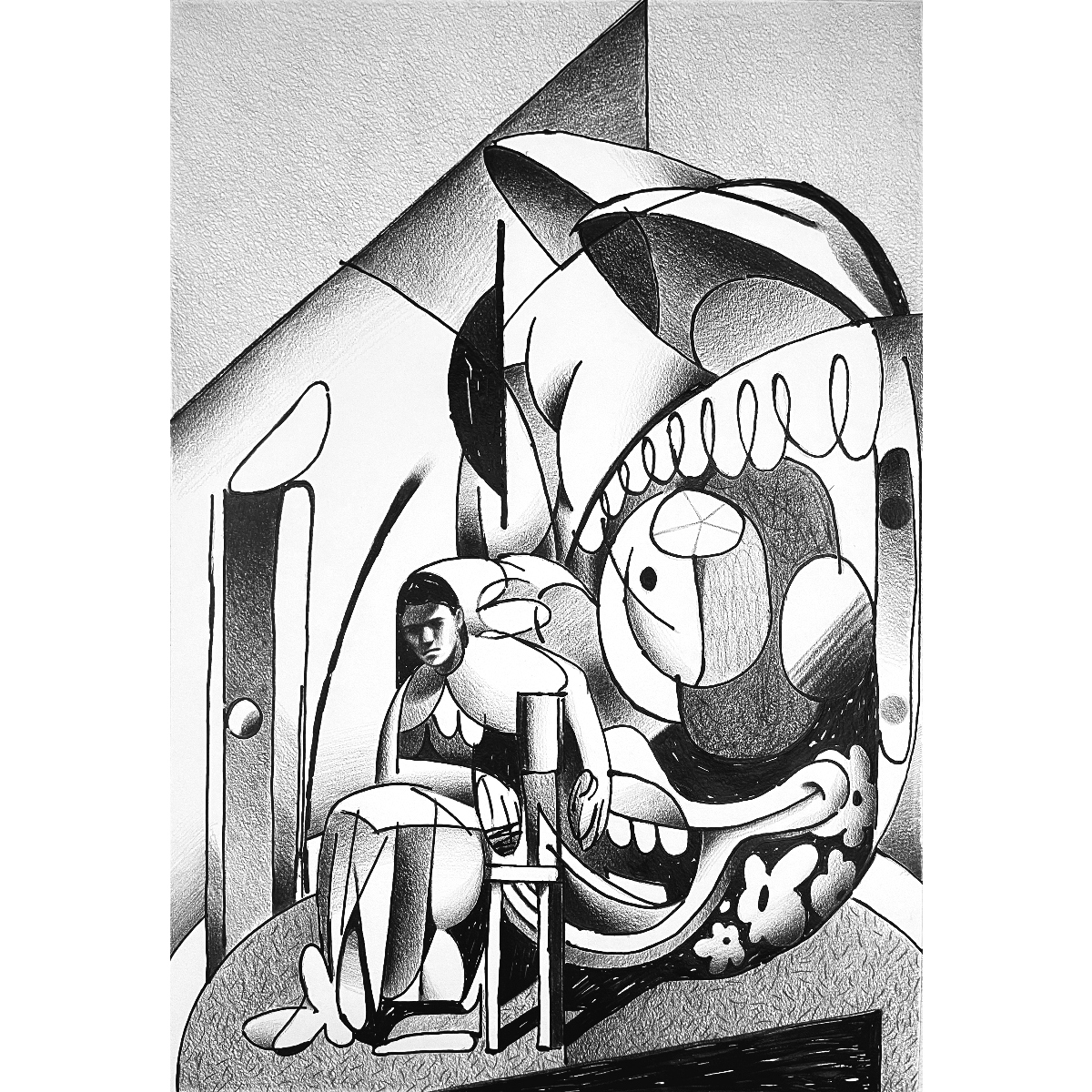 Бумага, акрил, карандаш Как часто перед сном вас захватывает поток навязчивых мыслей — сменяющих друг друга, словно кадры в бесконечной проекции? Воображение начинает работать автономно, создавая странные, порой абсурдные сценарии, лишь отчасти связанные с реальностью. В условиях нарастающего информационного шума, стремительного развития технологий и алгоритмов формируется особое состояние — фоновая тревожность, ставшая неотъемлемой частью современного опыта. Это тихое, но масштабное явление влияет на то, как мы думаем, чувствуем и воспринимаем будущее. Не случайно психотерапия превратилась в один из символов нашего времени. Под воздействием внешних факторов воображение способно конструировать настолько яркие и убедительные образы возможного будущего, что реальность постепенно отступает на второй план. Этот механизм лежит в основе серии “Weird Thoughts”. Её персонажи словно растворяются в собственных фантазиях: их силуэты размыты, в то время как воображаемые миры обретают плотность, насыщенность и визуальную выразительность. Художественный язык серии строится на контрасте — между блеклой, ускользающей реальностью и гипертрофированным, эклектичным пространством внутренних образов. Здесь страхи обретают форму: кто-то, охваченный тревогой перед катастрофами, населяет свои мысли чудовищами, сжигающими города; кто-то, одержимый идеей вечной молодости, мчится в фантазийном кабриолете-пилюле сквозь ландшафты собственного сознания. В этих сюжетах легко узнать себя. И, возможно, благодаря намеренно насыщенной, местами наивной живописной манере, зритель получает шанс отстраниться, взглянуть на свои тревоги со стороны — и затем вернуться к реальности, к её подлинной, живой и многослойной палитре.