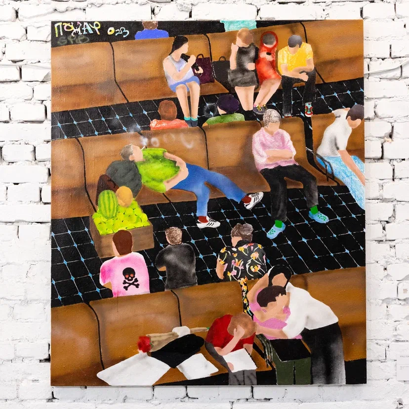 Холст, акрил, масляная пастель, аэрозоль